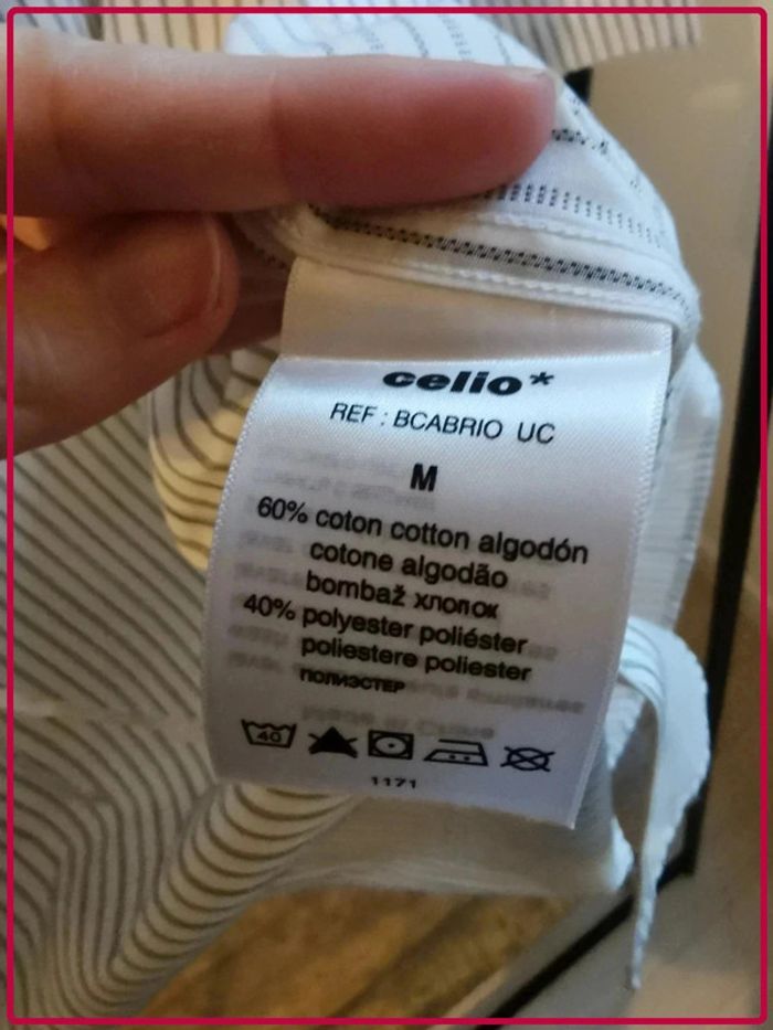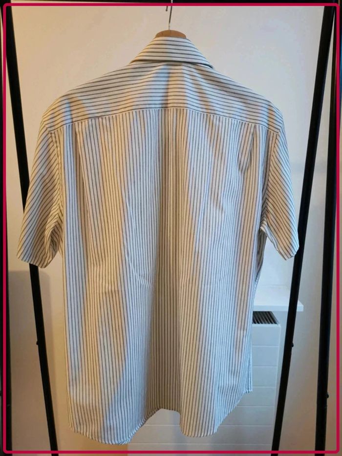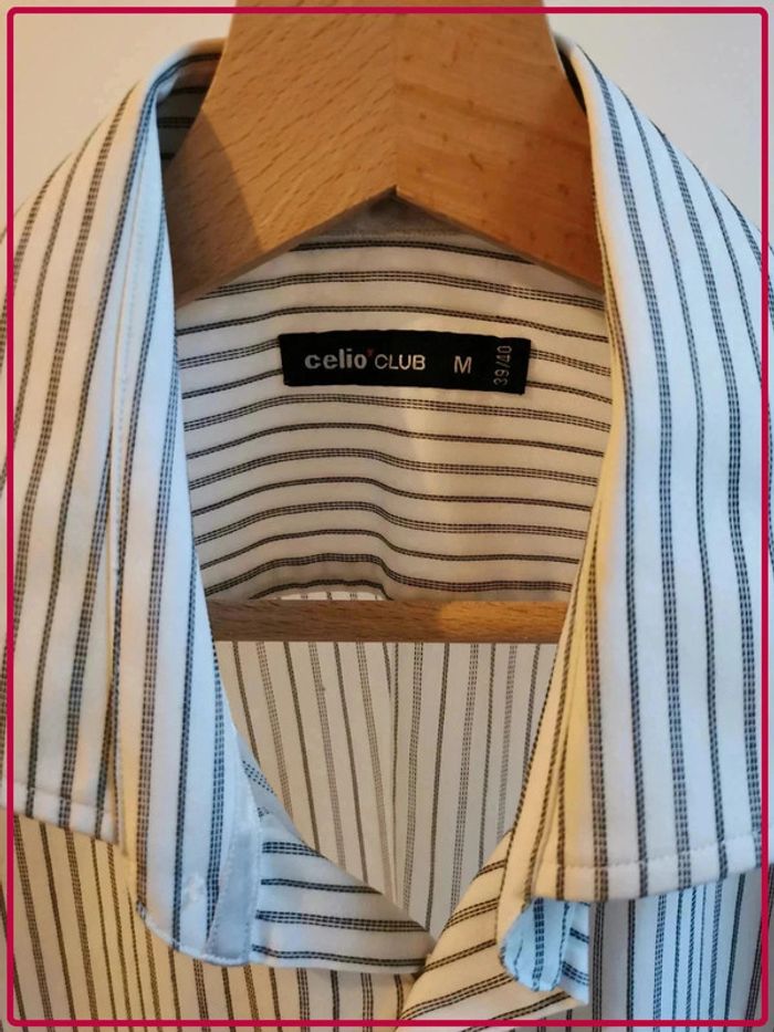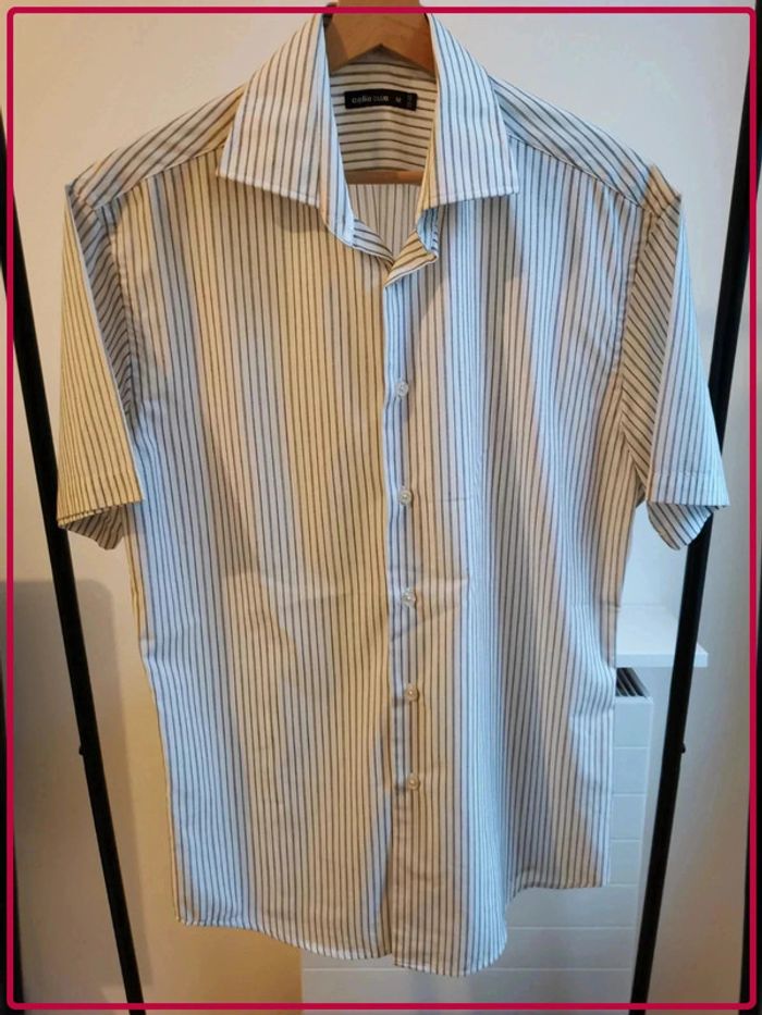 Chemisette blanche à rayures noires, légèrement jaune au niveau du col (non visible porté). Marque Celio, taille M. #giulia9516hommeM #chemisettehomme #celio