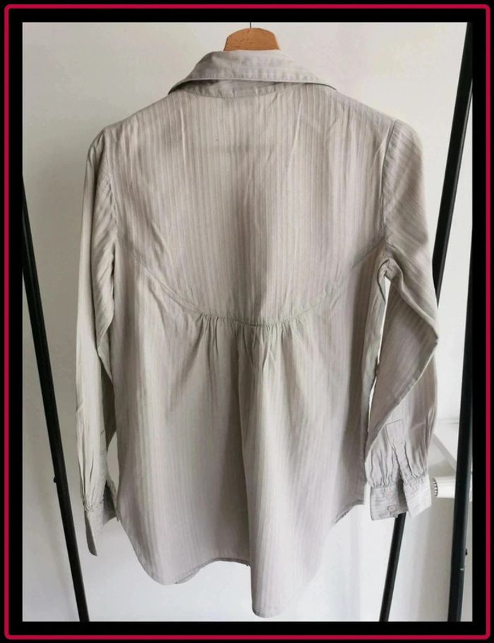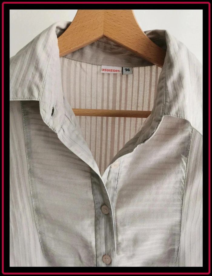 Chemise grise pour femme avec rayures de la même couleur et plastron, se porte large. #giulia9516femme36 #chemisefemme