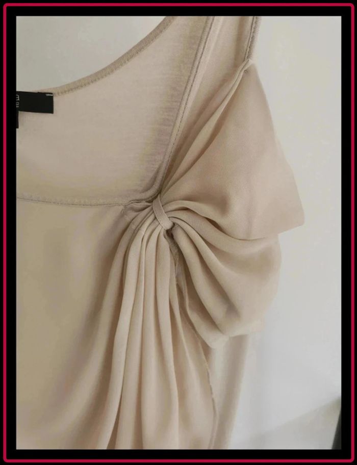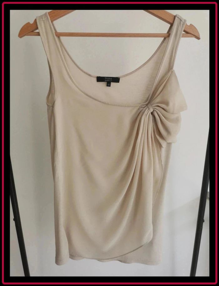 Débardeur beige avec voile et noeud sur le devant, taille XS. Très bon état. #giulia9516femme34 #noeud