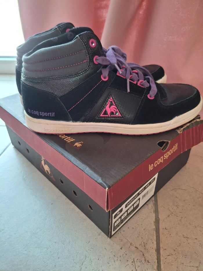 Basket Le Coq Sportif - pointure 41 - noire mauve et rose - très bon état - photo numéro 1