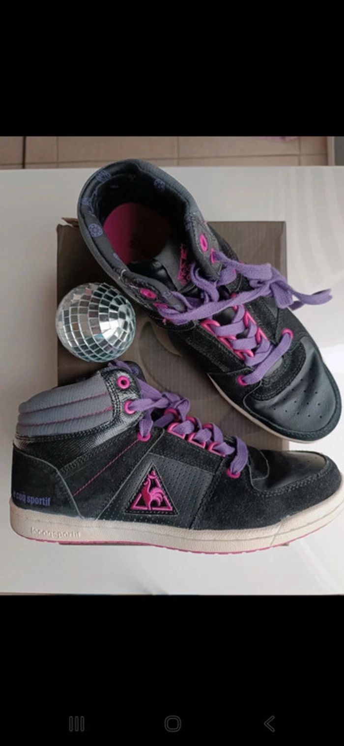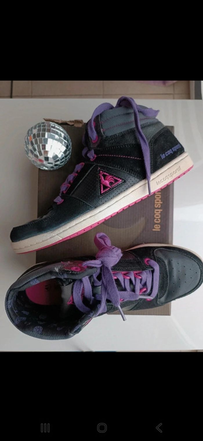 Basket Le Coq Sportif - pointure 41 - noire mauve et rose - très bon état Basket marque Le Coq Sportif Pointure 41, taille correctement Mélange nubuk et cuir Couleur mauve noir et rose En très bon état #clau_d1a_sport #clau_d1a_chaussures 📨 Envoi rapide et en petit format ⛔ Je n'accepte pas les retours, échanges ou remboursements. Merci de revendre l'article si celui-ci ne vous plaît/convient pas