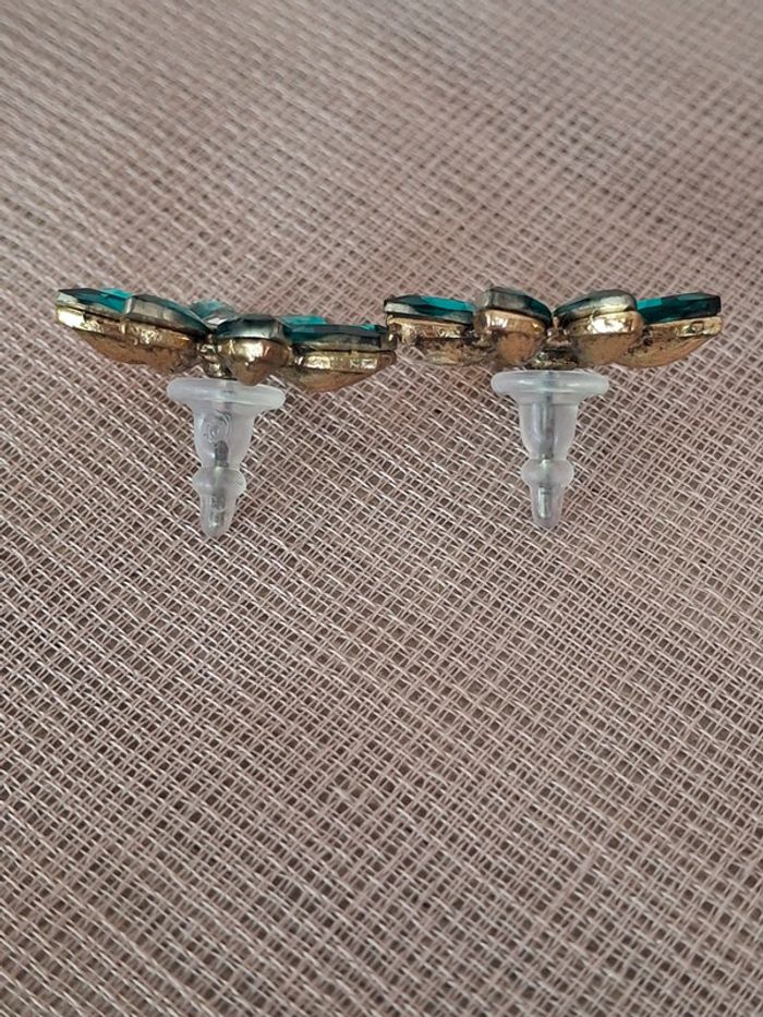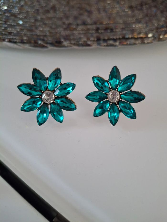 Boucles d’oreilles fleurs vertes - neuves sans étiquette - photo numéro 3