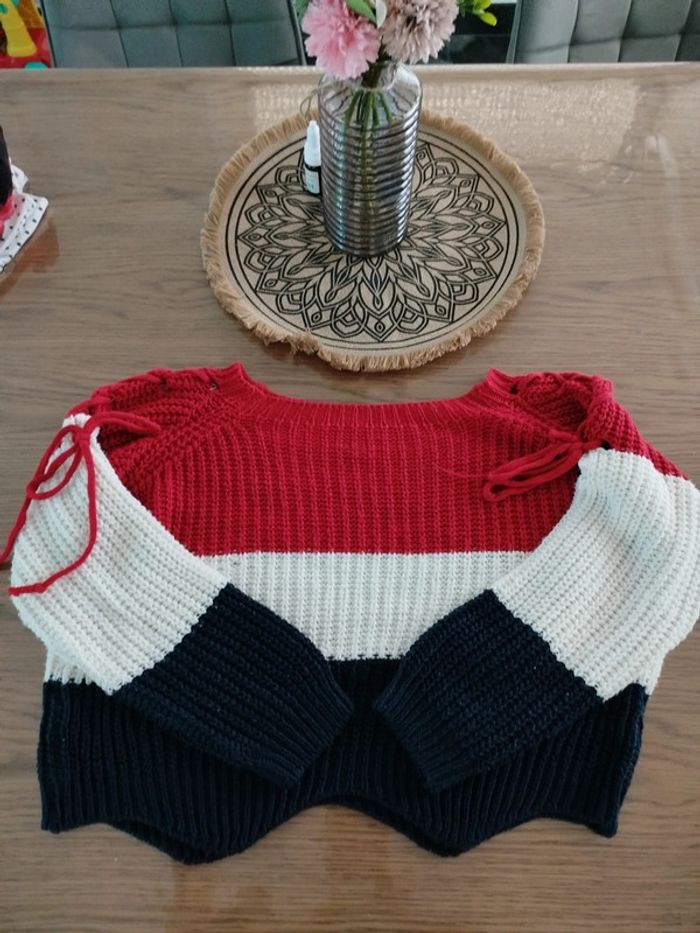 Pull croc top maille tricolore bleu blanc rouge