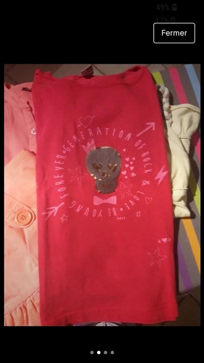 Lot de 5 hauts 6€ possibilité de les acheter à l unité pour 1.50€. Marque U pour le blanc et le orange. TAO le vert, le rouge et TCF le rose, qui d ailleurs est noté 10 ans mais que je trouve petit. Tous en 8 ans. N hésitez pas à descendre dans la liste de mon dressing, vous y trouverez un certain nombre de vêtements filles en 8 ans et +