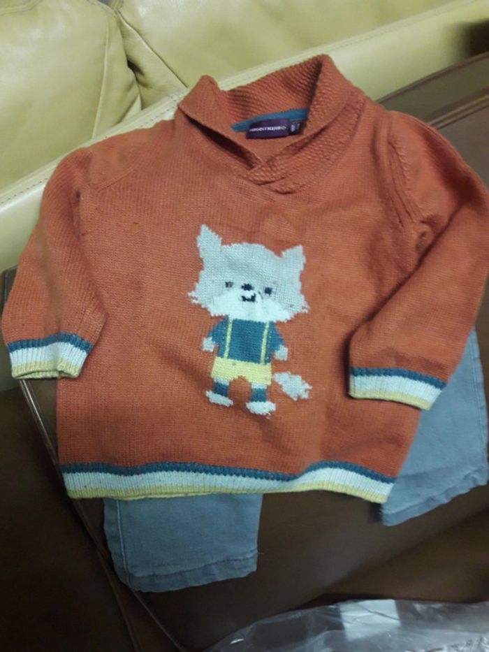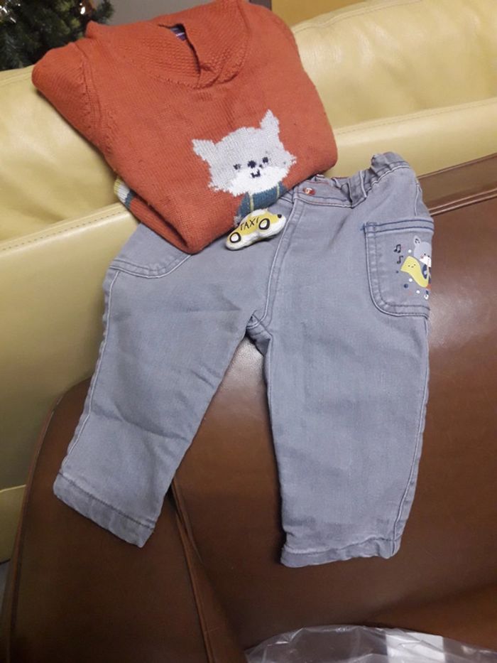 9 mois . Pantalon tout molletonné, parfait pour l' hiver, accompagné de son pull, trop mignon mais petit bémol, il a peluché dès le premier lavage!