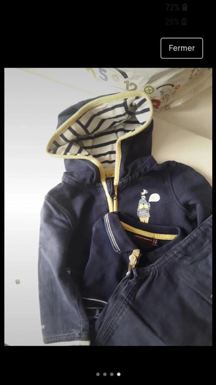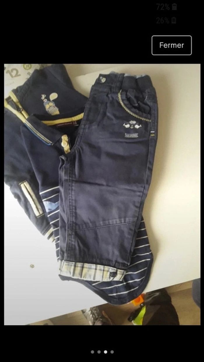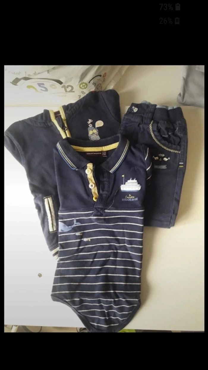Idéal pour ce début de printemps et l été. Body manches courtes et pantalon léger 12 mois accompagnés d'un sweet zippé en 18 mois (mais taille petit)