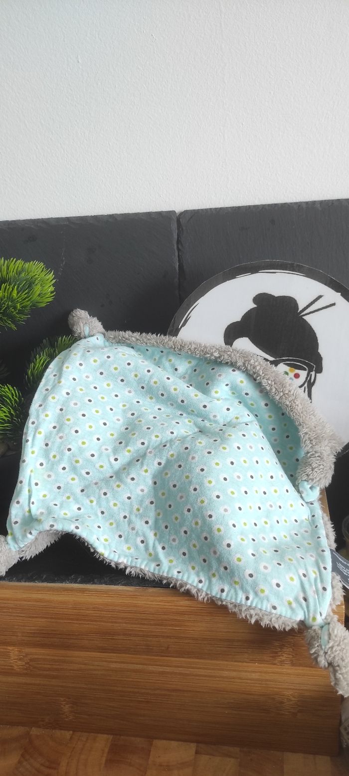 Doudou ours gris bleu Orchestra Prémaman ronds blanc vert noeuds Plat Carré - photo numéro 1