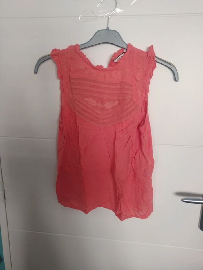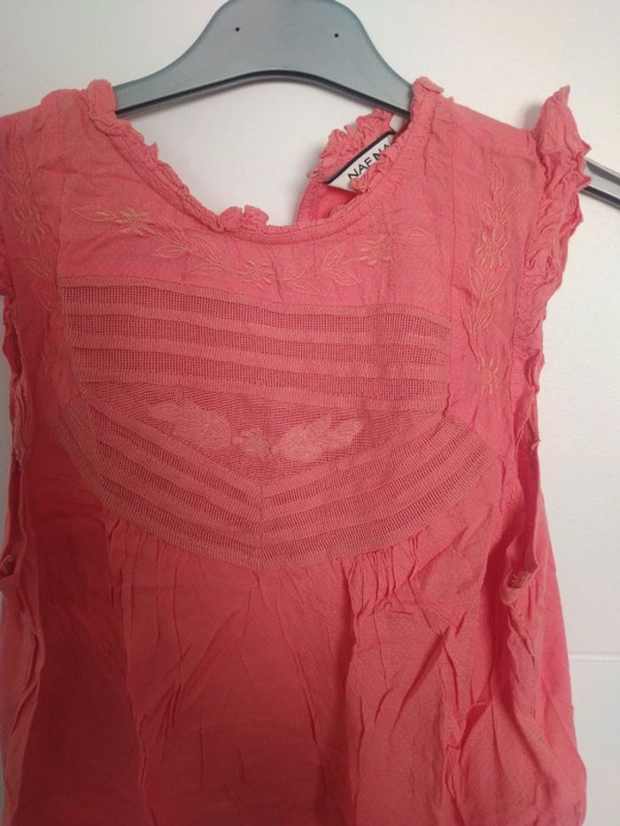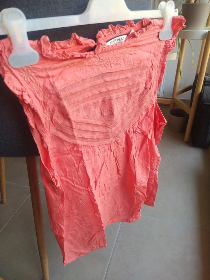 Dentelle sur le col Matière coton dans le dos Taille L Couleur corail (comme les deux premières photos) Froissé sans fer à repasser