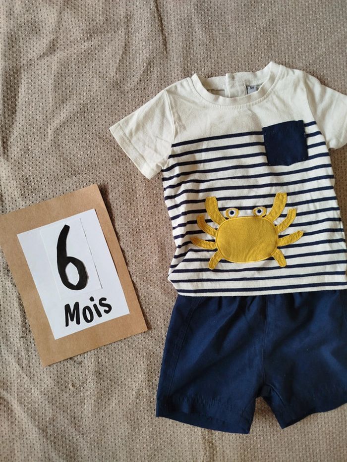 Ensemble été short/t-shirt 6 mois Marque inconnue Bon état 🌸Voir autres articles: bodys/bodies/pyjamas/brassière/legging/Ensemble/chaussettes/bavette/combishort/salopette/chaussons/gigoteuse/turbulette/1 mois/3 mois/6 mois