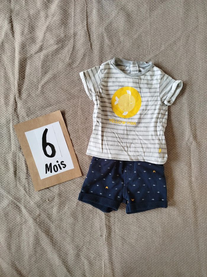 Ensemble été short tee shirt Obaïbi bon état 🌸Voir autres articles: bodys/bodies/pyjamas/brassière/legging/Ensemble/chaussettes/bavette/combishort/salopette/chaussons/gigoteuse/turbulette/1 mois/3 mois/6 mois