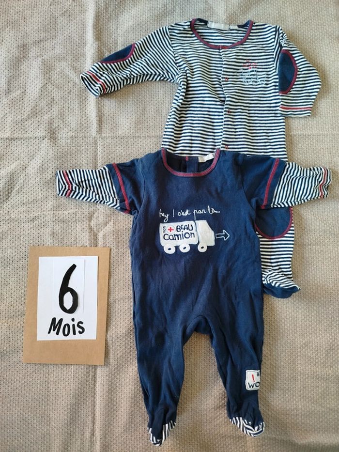 Lot 2 pyjamas légers Combinaison grenouillère Idéal mi saison/été 6M 3 suisses