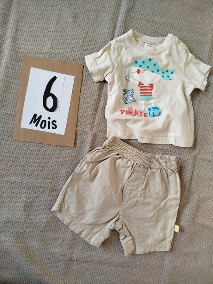 Ensemble idéal mi saison/été 6M Short tex Tee shirt manches courtes sans marque