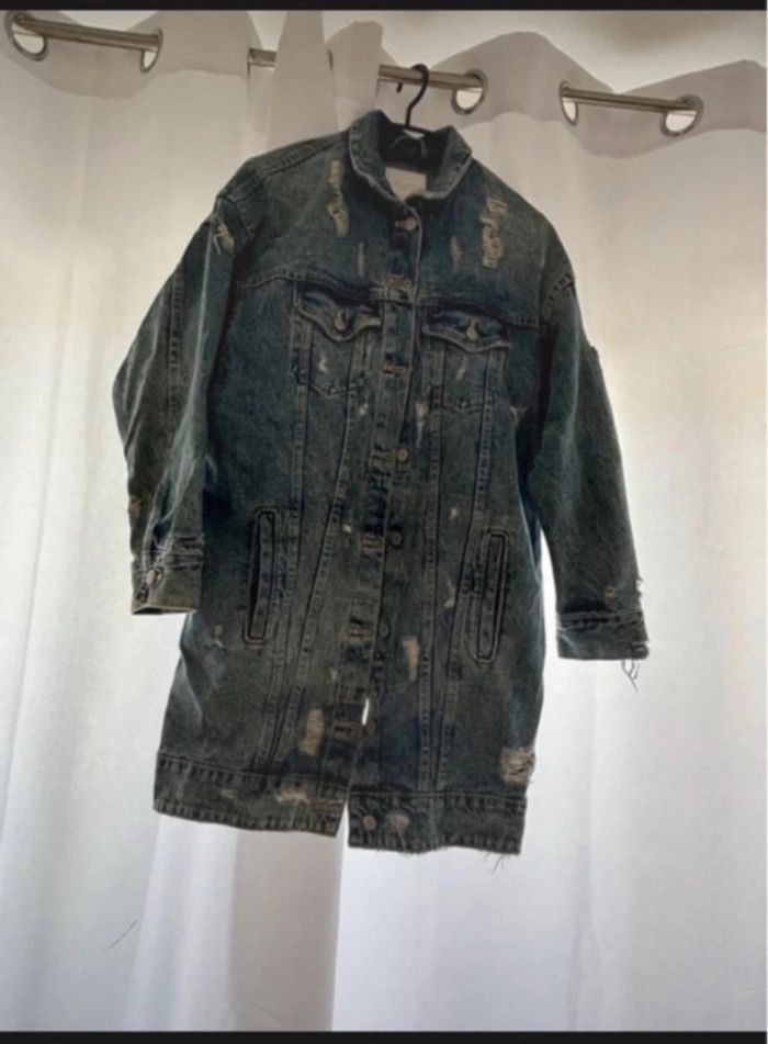 Veste longue en jean ZARA - style vintage/destroy - photo numéro 1