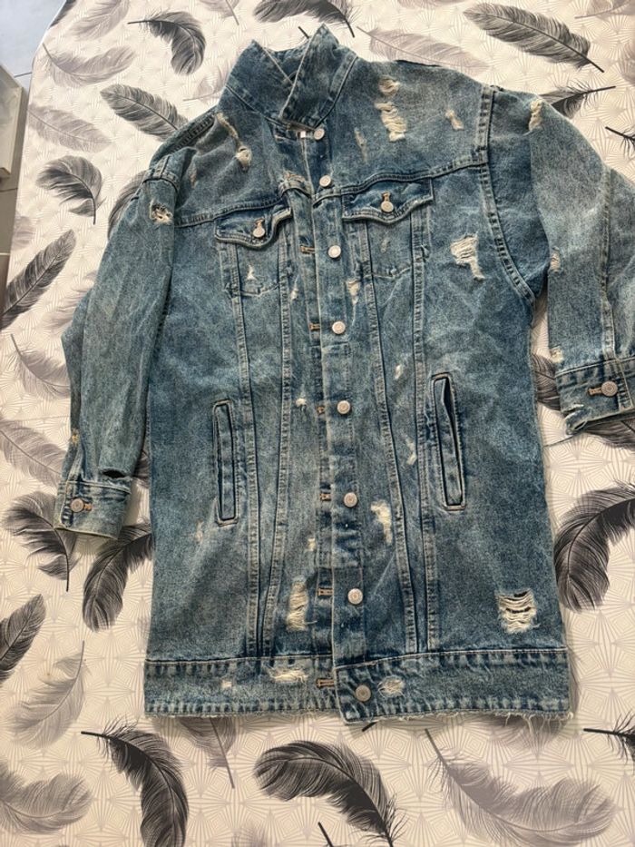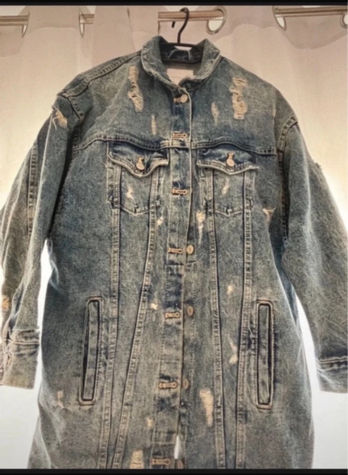 Veste longue en jean ZARA - style vintage/destroy - photo numéro 2