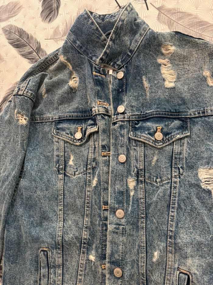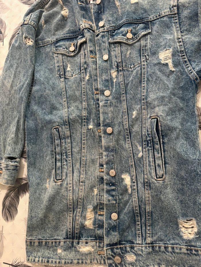 Veste longue en jean ZARA - style vintage/destroy - photo numéro 7
