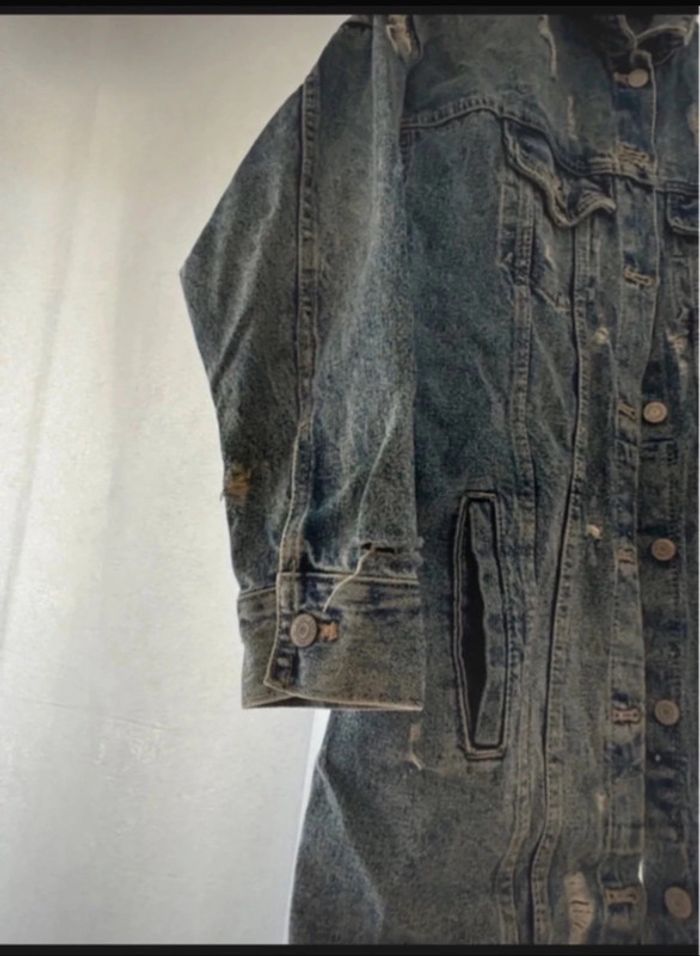 Veste longue en jean ZARA - style vintage/destroy - photo numéro 9
