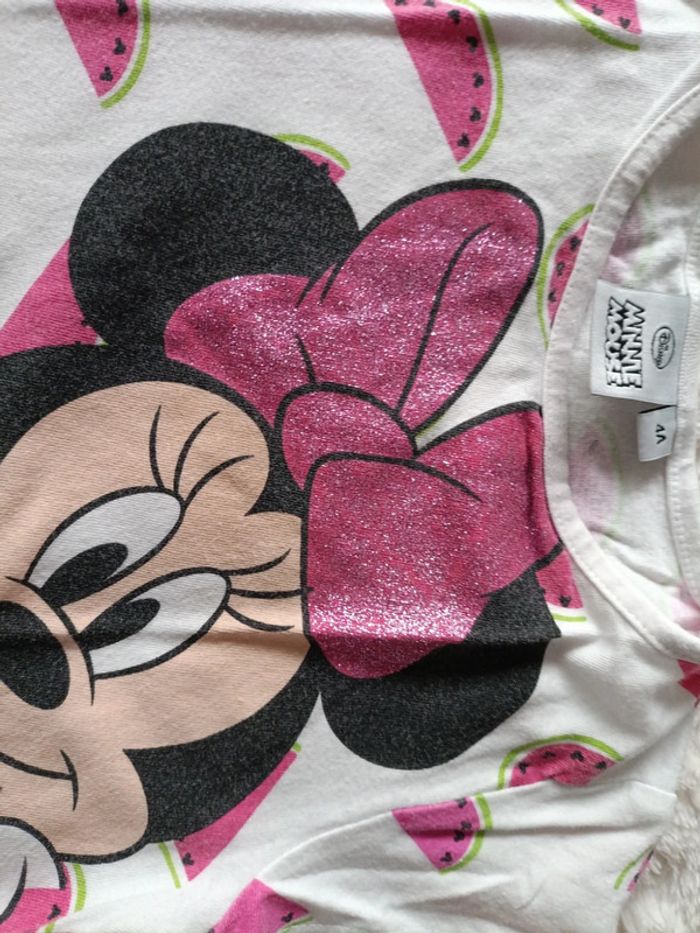 T-shirt manches courtes Motif Minnie et pastèques Détails en paillettes Bon état Taille 4 ans