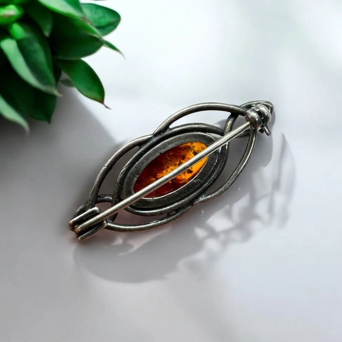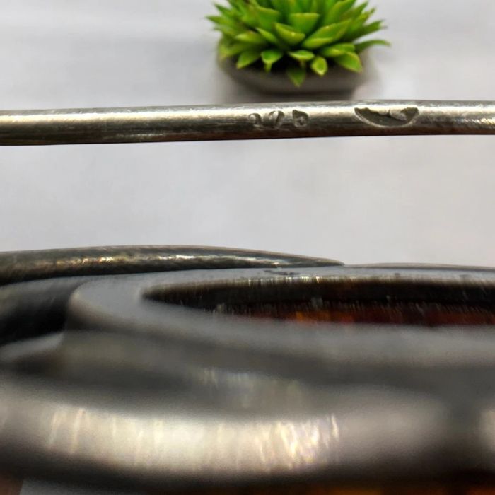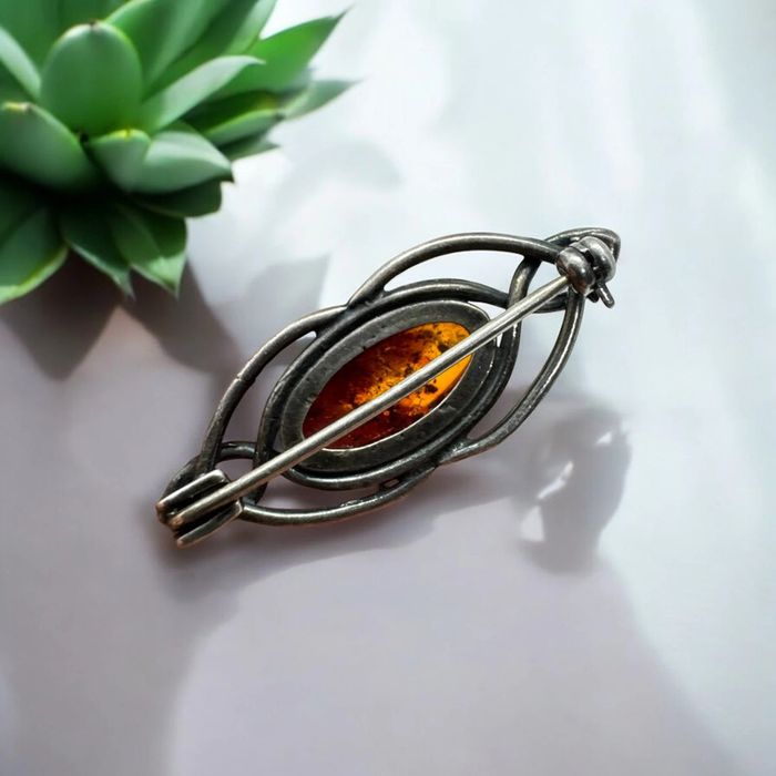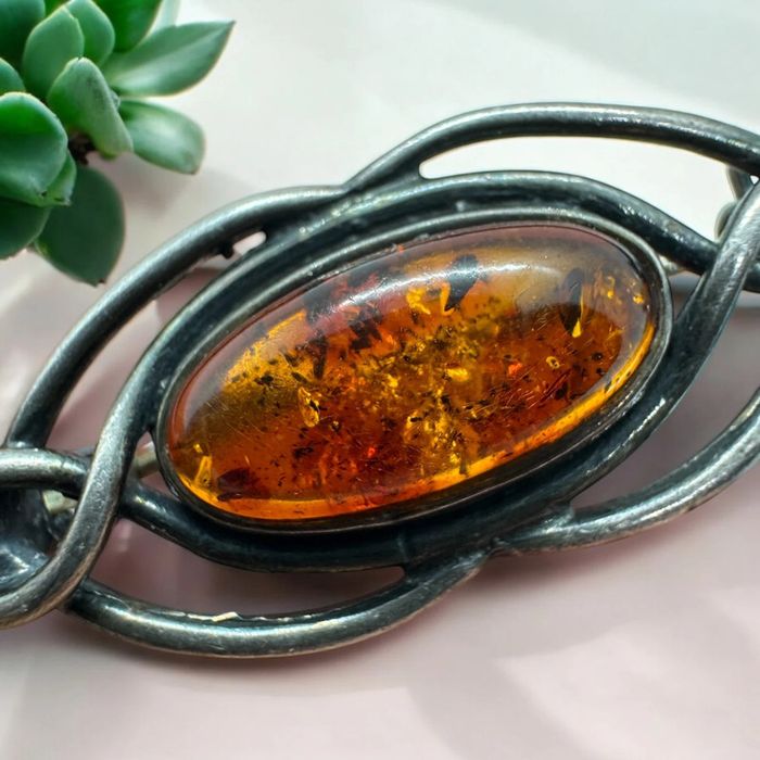 Cette élégante broche en argent est ornée d’une pierre rappelant l’ambre naturel, avec un poinçon discret “22D” à l’arrière, bien que peu visible. Son design unique et raffiné en fait un bijou intemporel et précieux, idéal pour sublimer toute tenue. Ne laissez pas passer cette pièce au charme vintage !