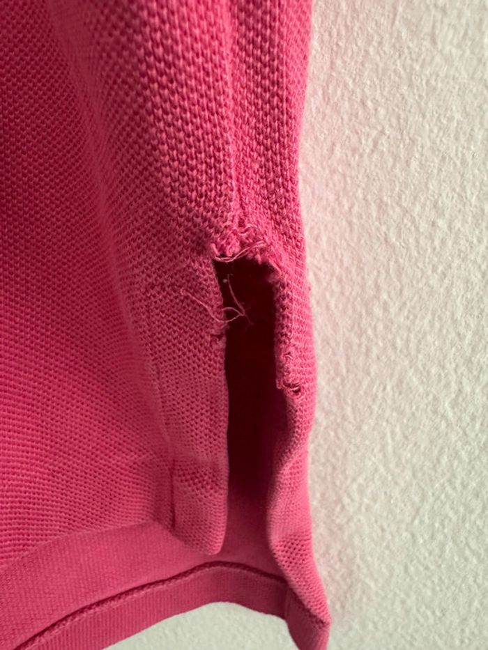 Polo Ralph Lauren - Taille M Couleur framboise, 100% coton. État : bon (petite déchirures sur les fentes latérale - voir photos). Très confortable et léger.