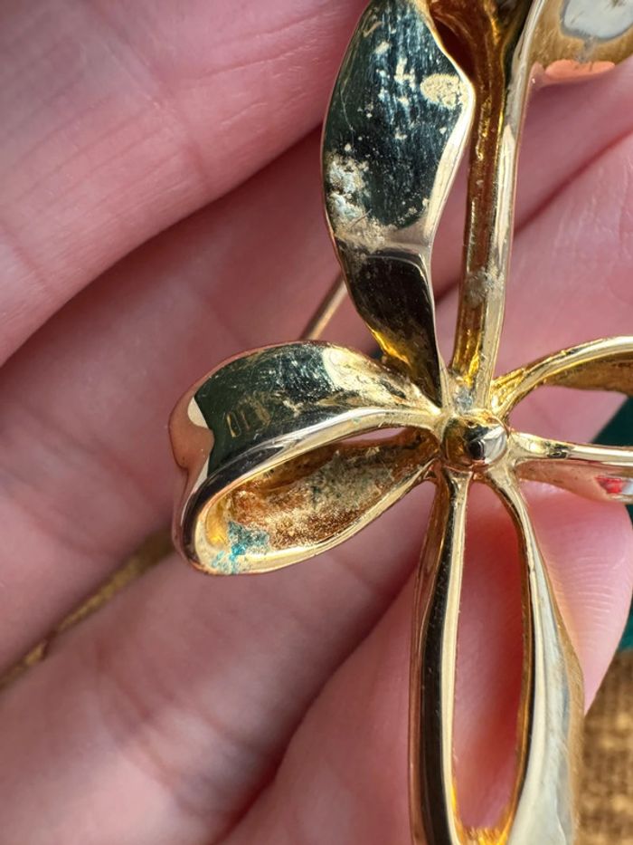 Broche vintage dorée fleur ornée de strass - photo numéro 10