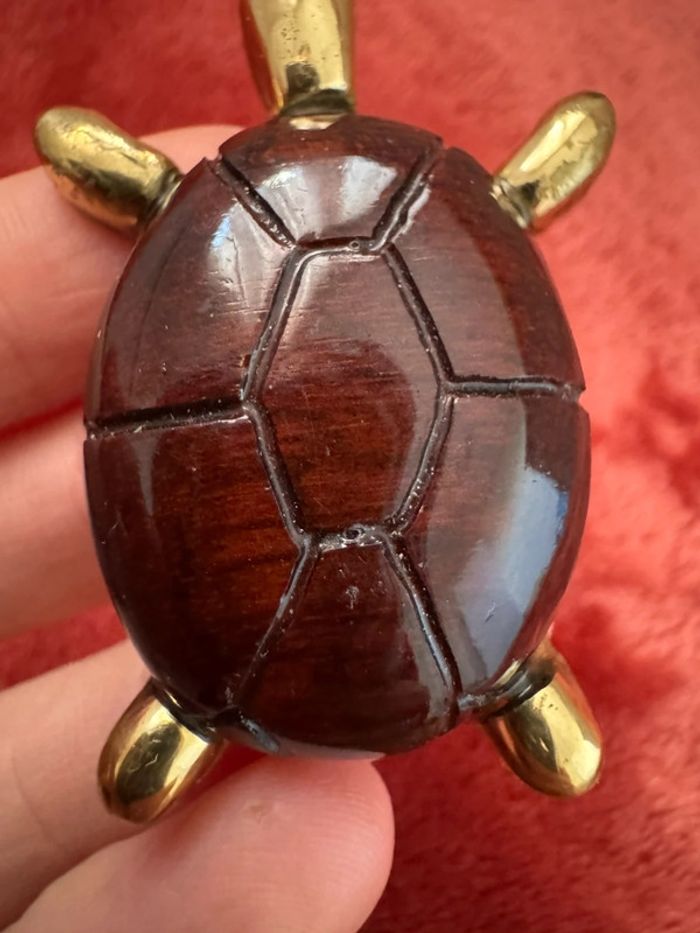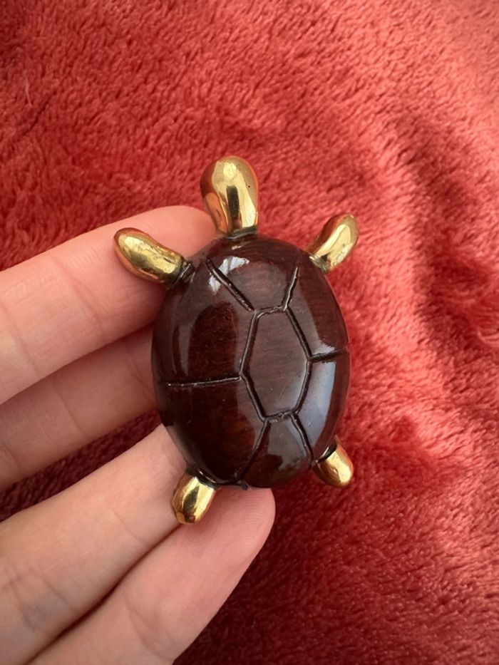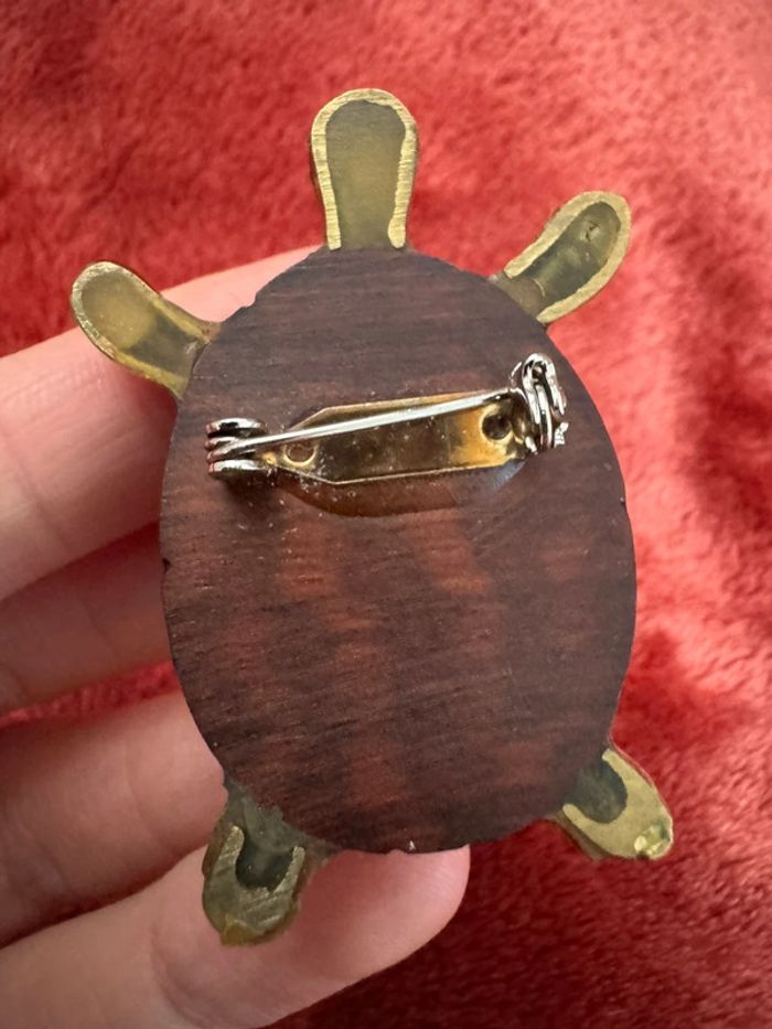 Broche tortue vintage en bois et laiton Charmante broche en forme de 🐢 , artisanale, composée d’un corps en bois verni et de pattes en laiton doré. Pièce unique et originale, mesurant environ 5 cm de long. Parfaite pour accessoiriser une veste, un sac ou une écharpe