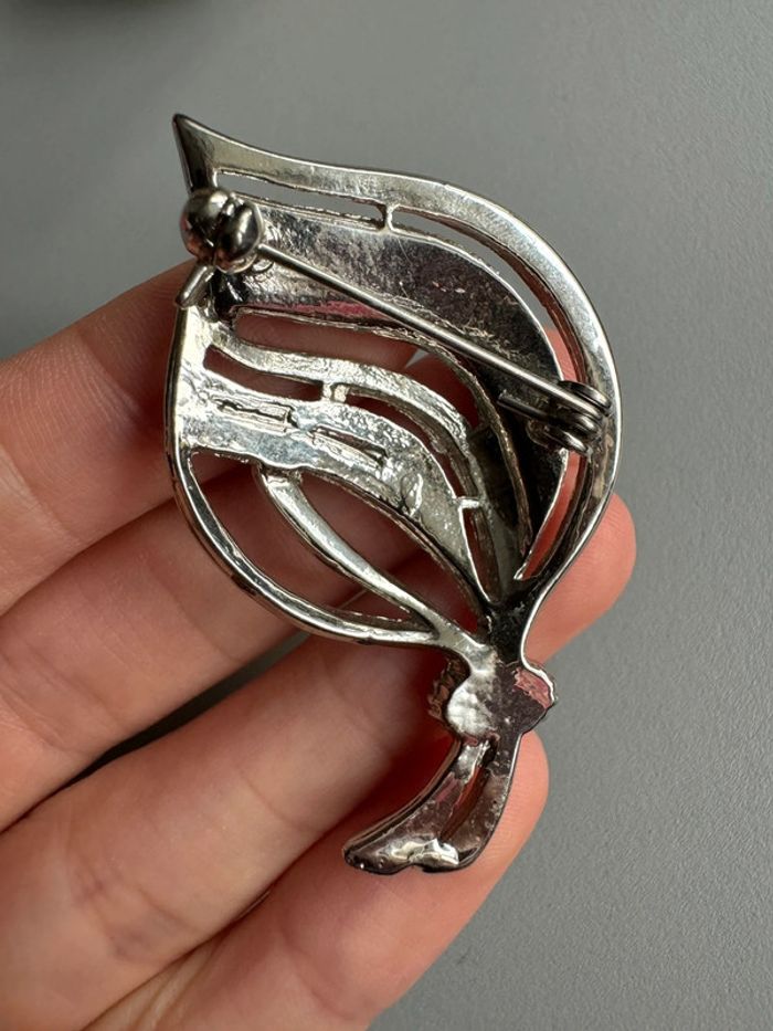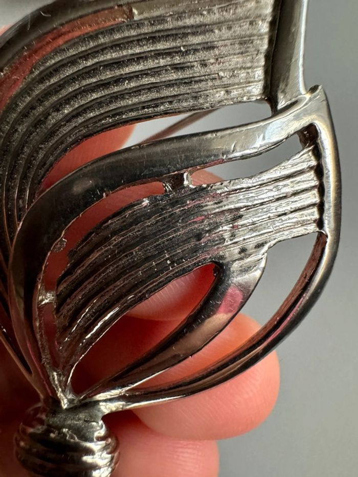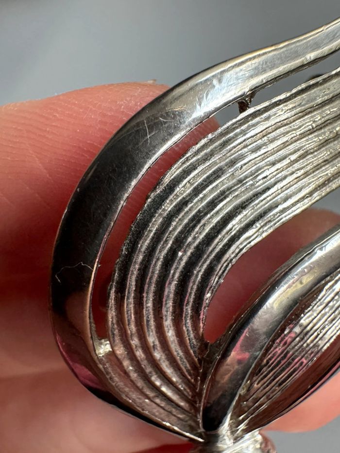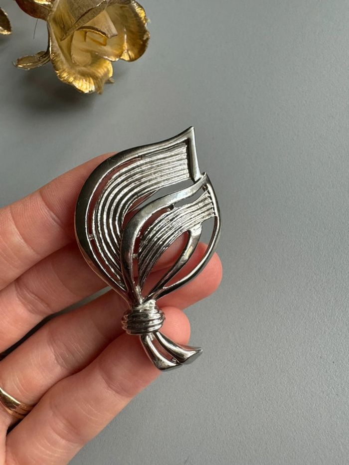 Broche vintage en forme de feuille, ton argent texturé, design classique et élégant