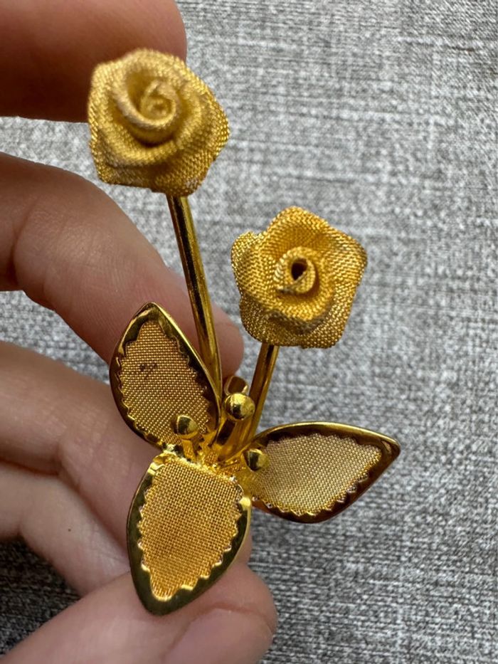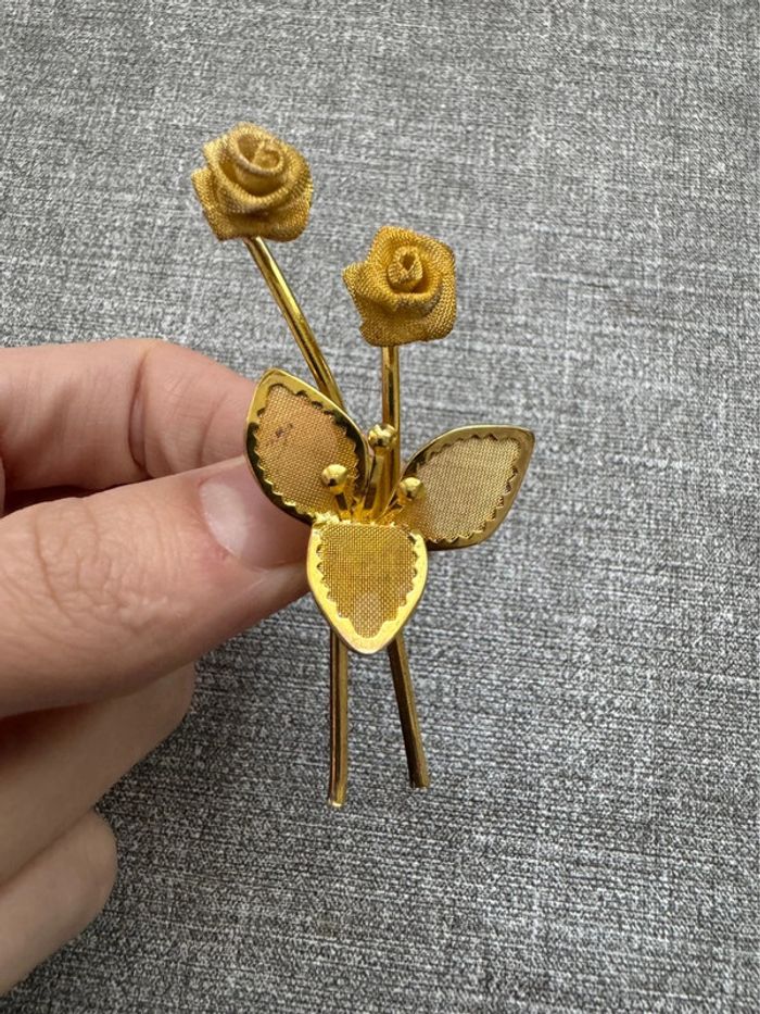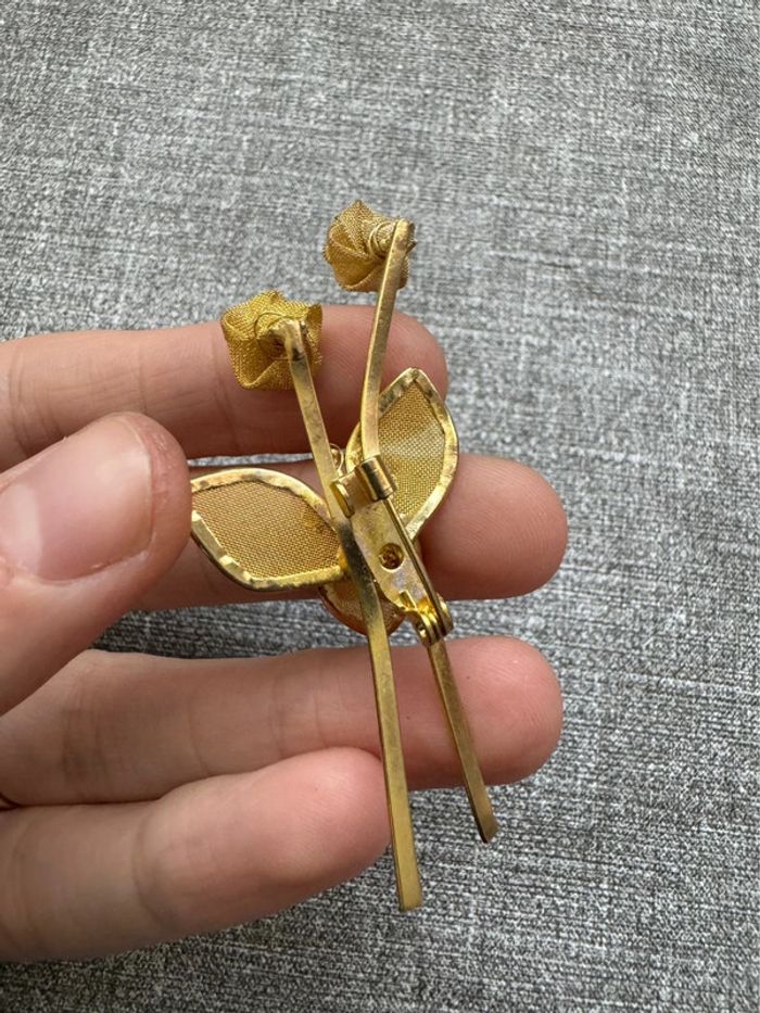 La broche est en métal doré et mesure 5 x 2 cm de diamètre et a un joli design