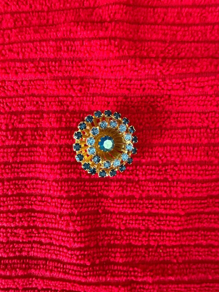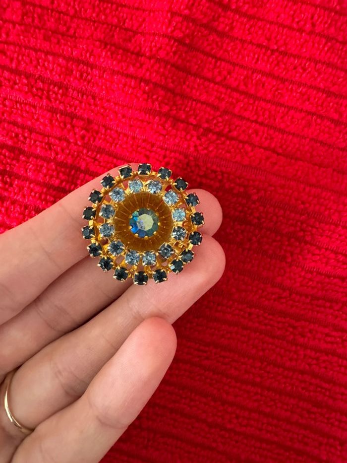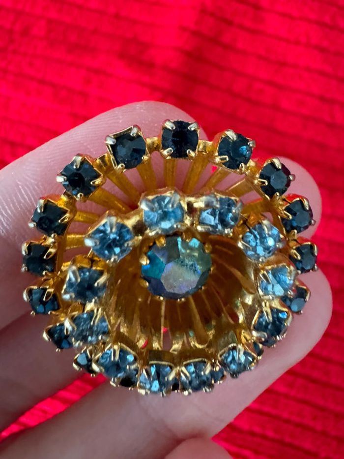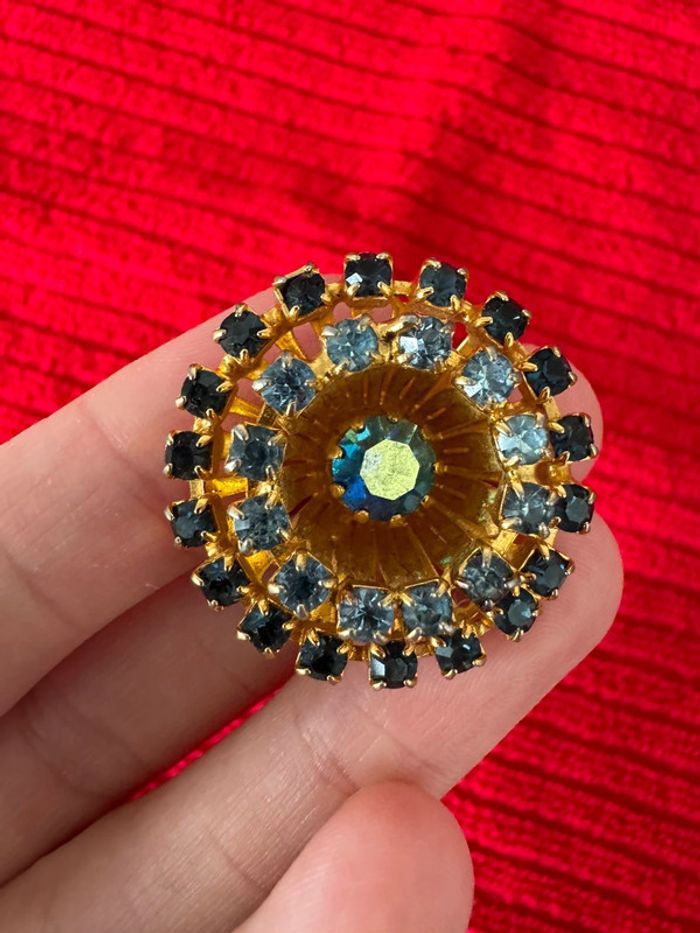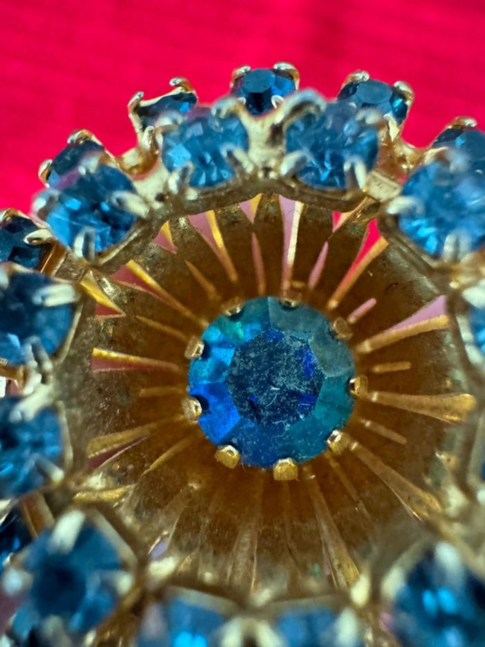 Belle broche française antique - Cristaux bleu foncé et bleu clair - Forme de fleur 🌸