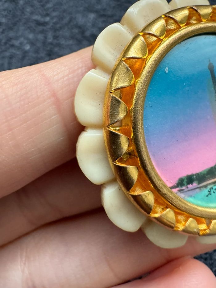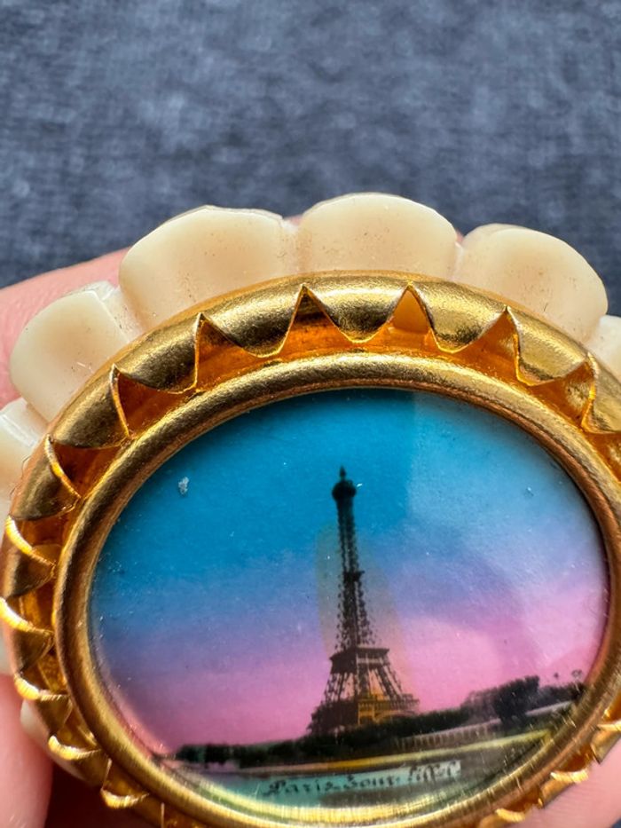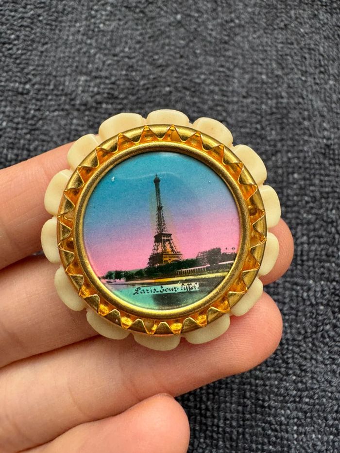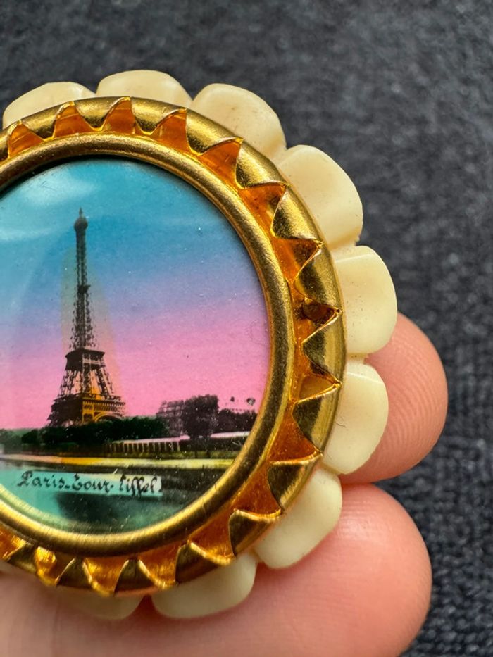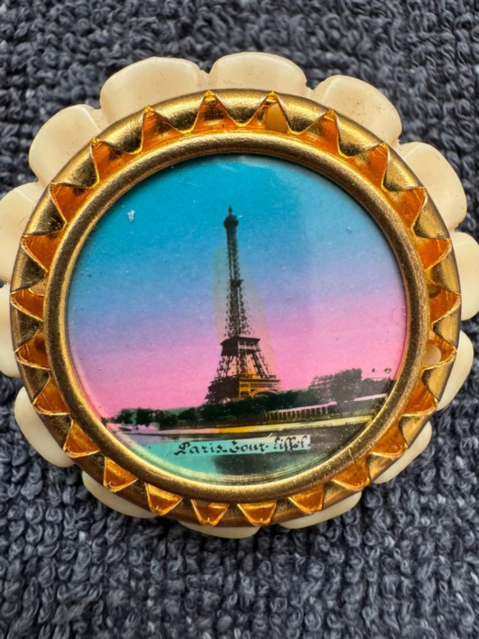 Magnifique broche ancienne avec une image Tour Eiffel