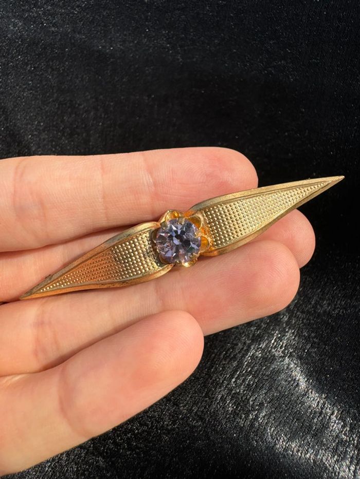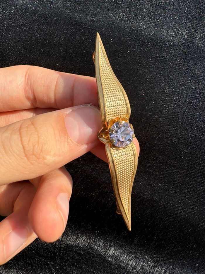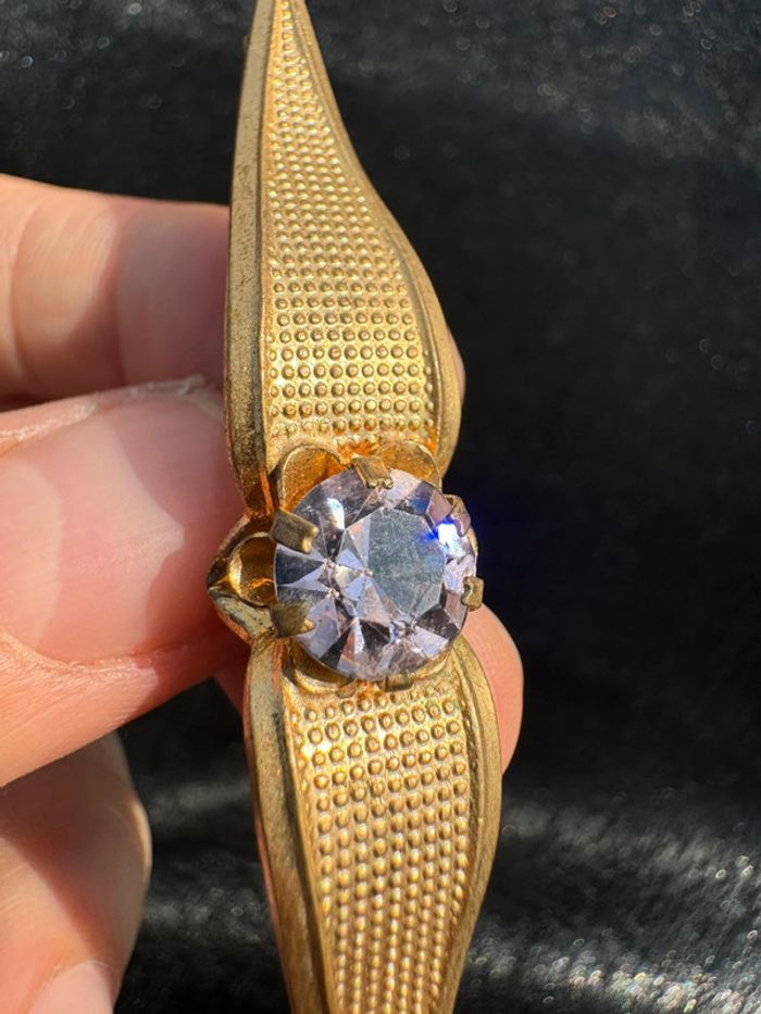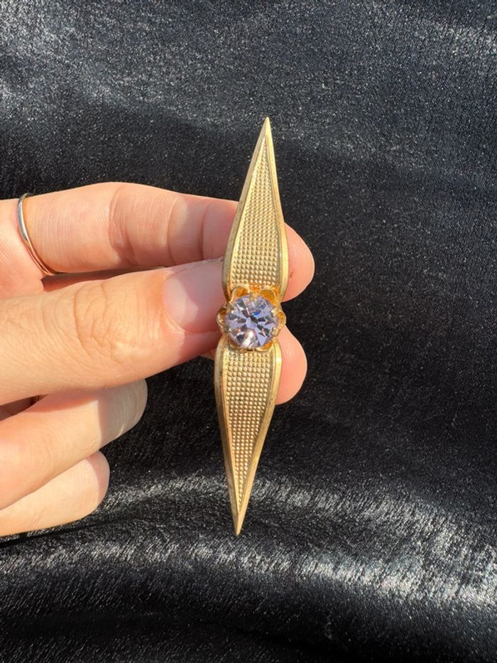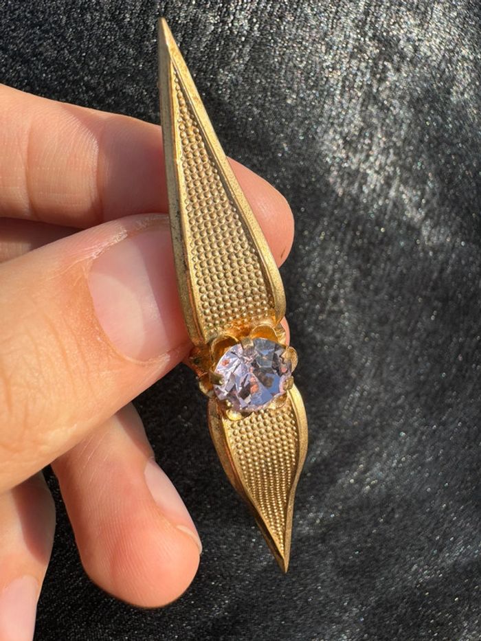 Ancienne broche fantaisie en métal doré et strass