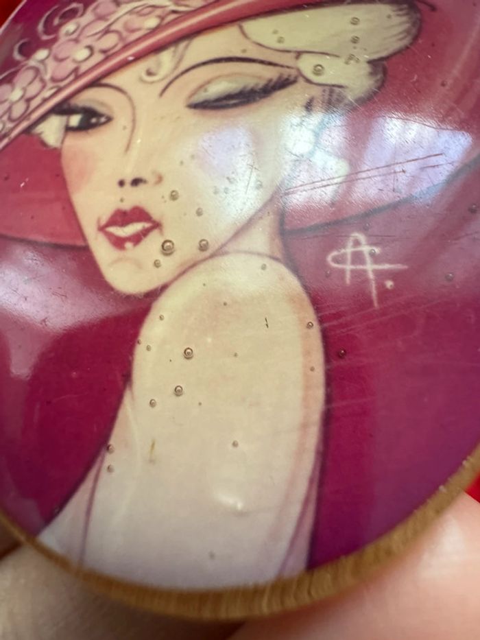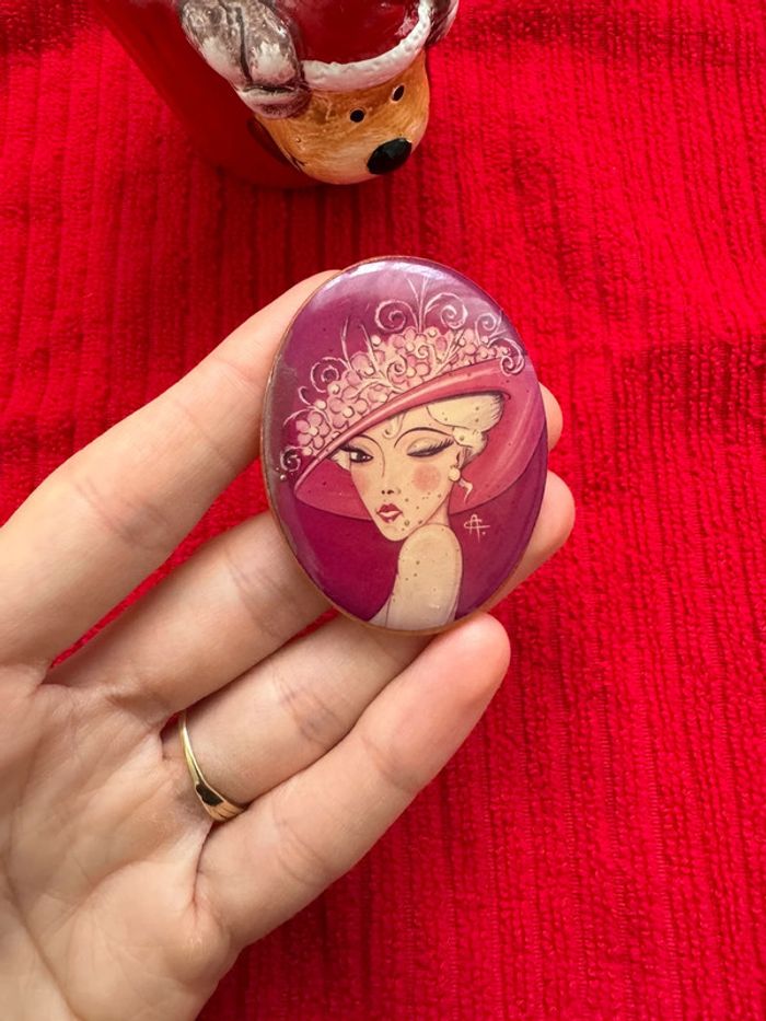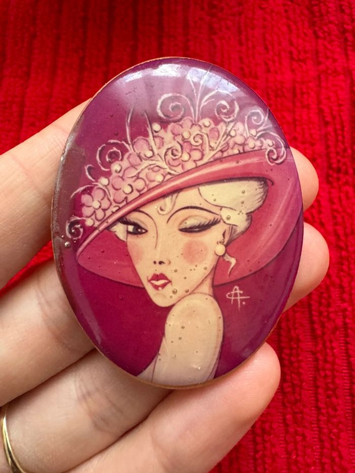 ANCIENNE BROCHE VINTAGE 70 PORTRAIT FEMME- signée CA
