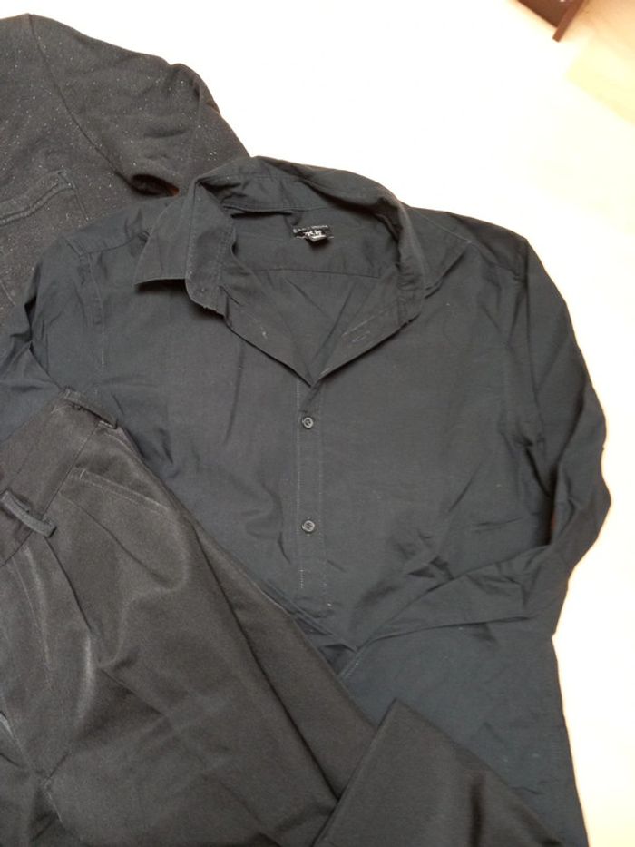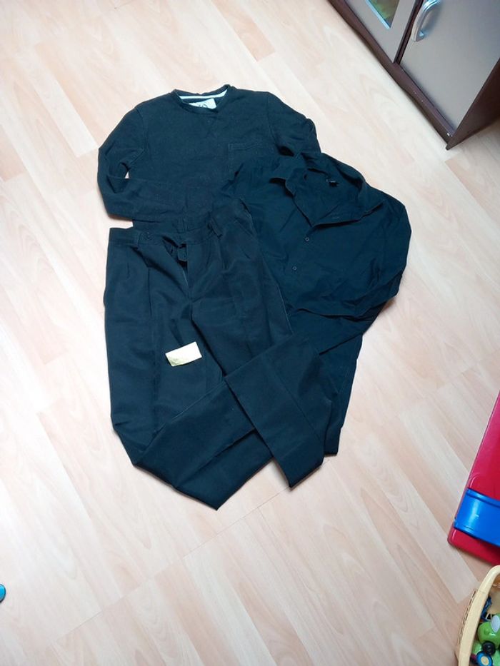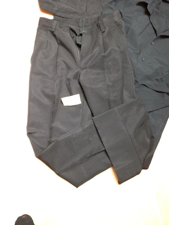 Idéal pour les personnes qui travaillent en restauration. Super lot neuf, il y a juste le pull qui a été porter. - Un pull noir tâcheté de léger point blanc. Marque bizzbee, taille S. DONC DEJA PORTER (4€) - Une chemise noire NEUVE de la marque H&M , taille S (5€) - Un pantalon en polyester avec possible pli sur les jambes pour le service. Marque Febvay, France, taille 36 (9€) Articles pouvant être vendu seul également. Me demander. Lot à 18 €.