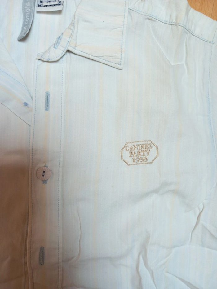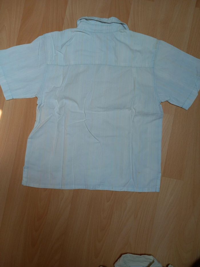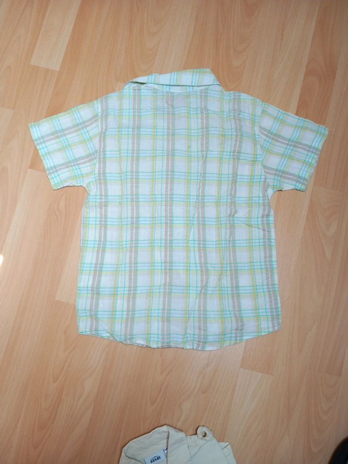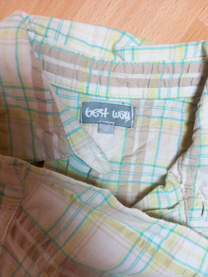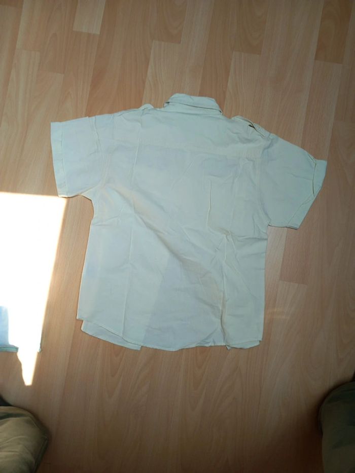 Vends lots de 3 chemises garçons manche courte comprenant : une chemise blanche ,vert et marron "best Way" taille 8 ans - une chemise blanche rayée bleu clair et jaune (coloris très pâle) "Tout compte fait". Taille 8 ans Un légère tâche à l'avant. (Photo 9) - une chemise crème avec motifs animaux à l'avant. NEUVE, jamais portée "Kiabi" Taille 8 ans