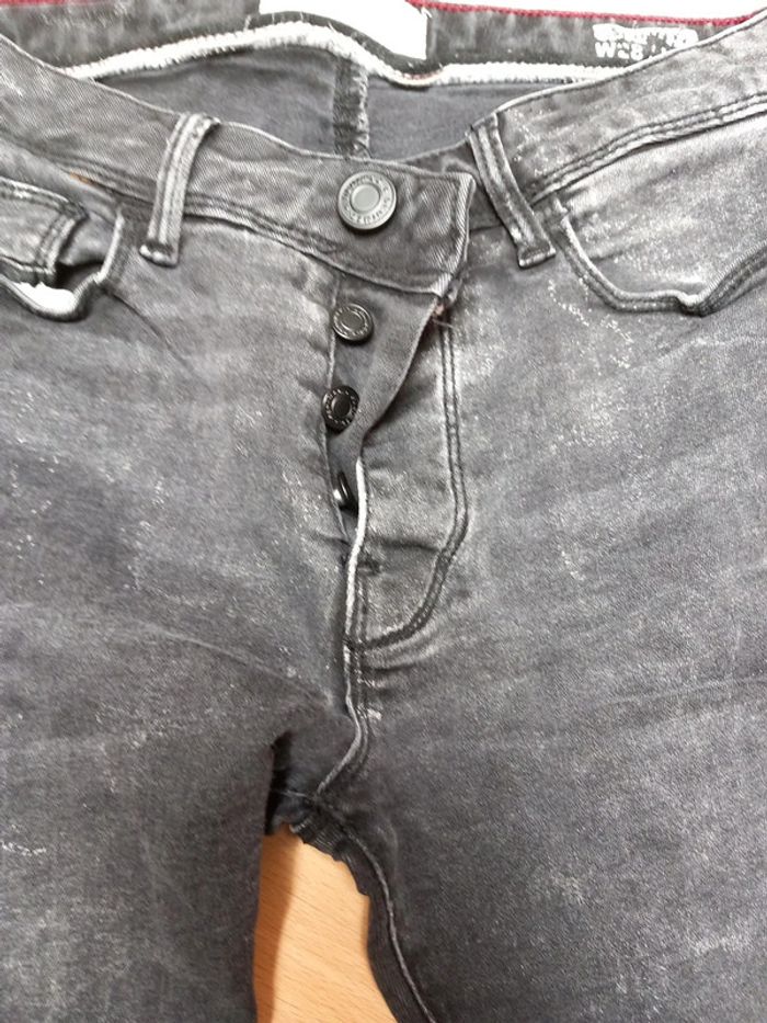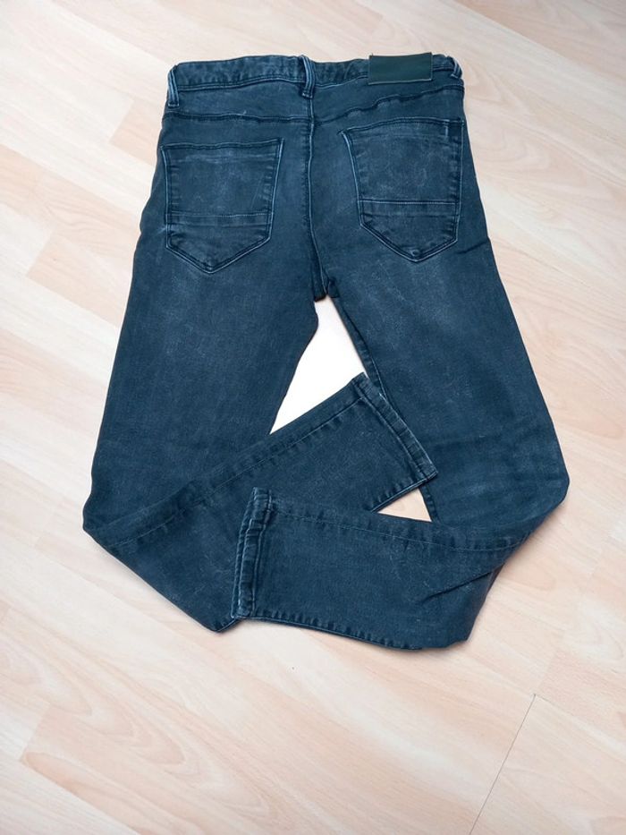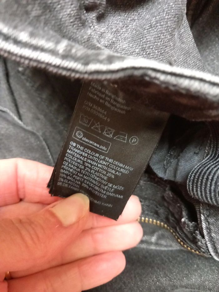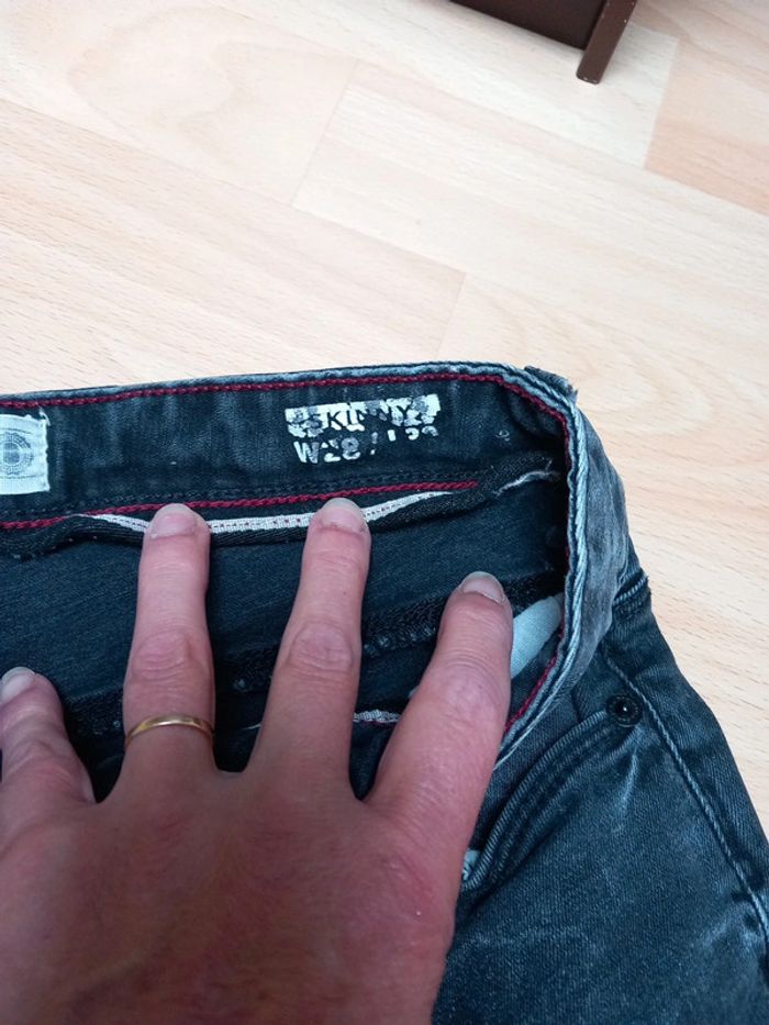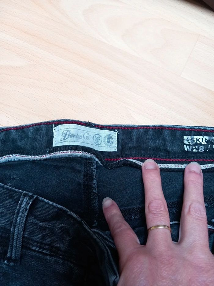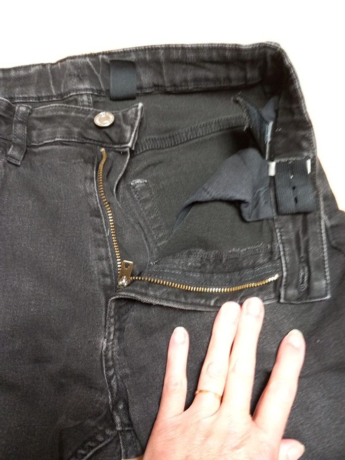 Taille 14 ans environ. - Un noir délavé avec fermeture boutons. Porter que 2 fois. - Un noir fermeture et taille réglable par un élastique. Celui ci a été porté. La couleur est légèrement défraîchie. Aucun trous sur les deux. Jean skinny fit les deux 8€ les deux