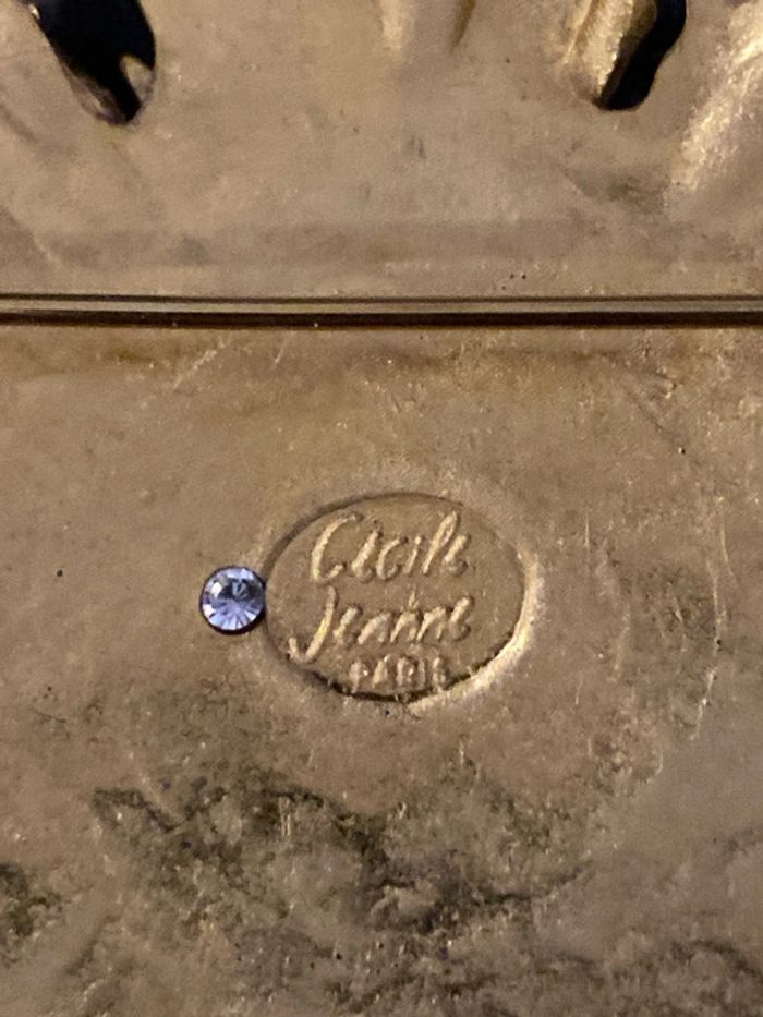 CECILE ET JEANNE Paris magnifique broche vintage en métal doré . Marqué CECILE JEANNE Paris. Présente quelques marques d’usage