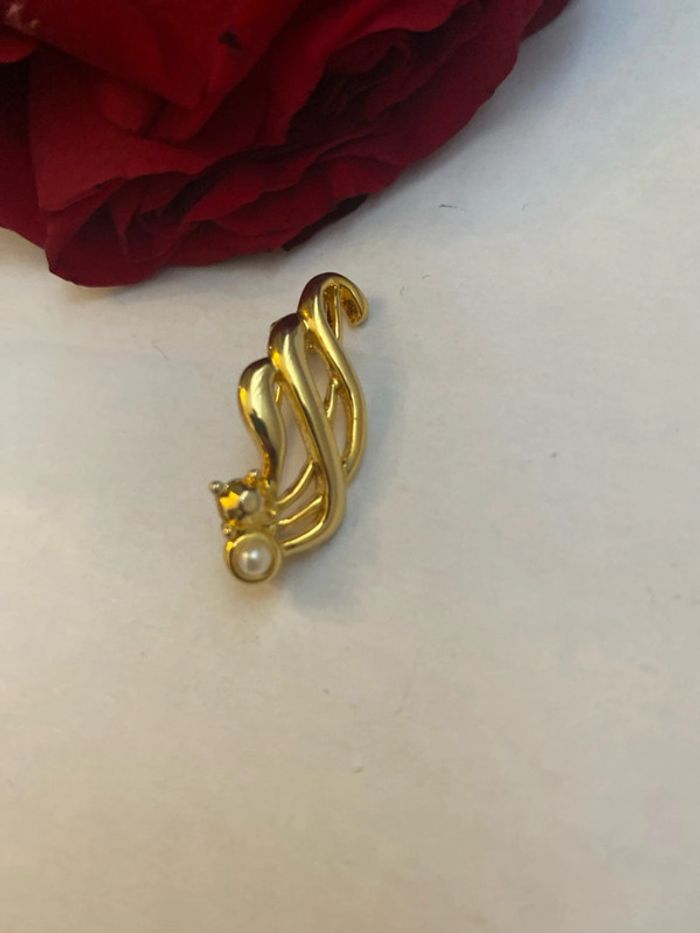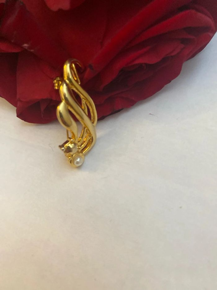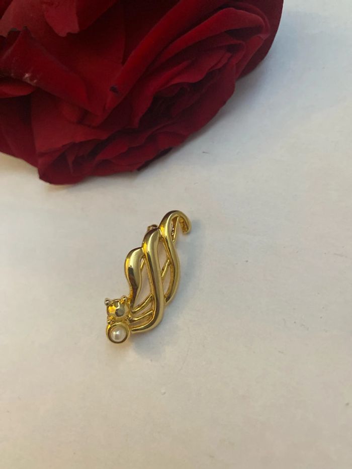 Broche vintage en plaqué or et fausse perle