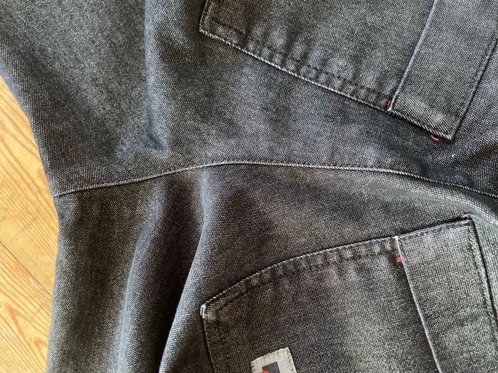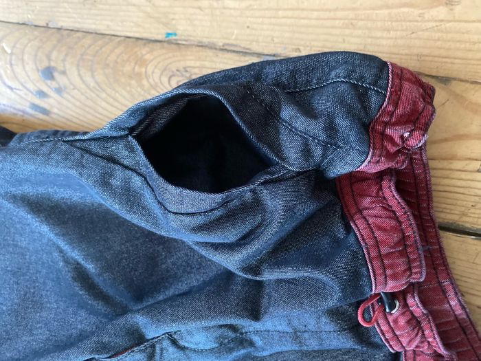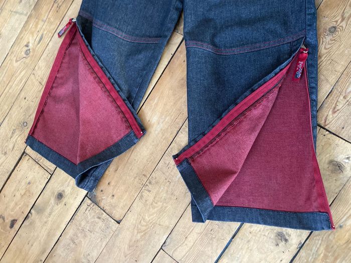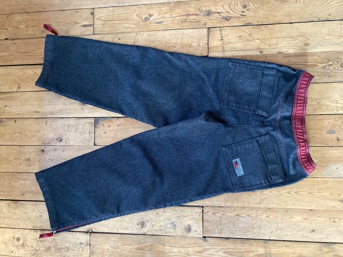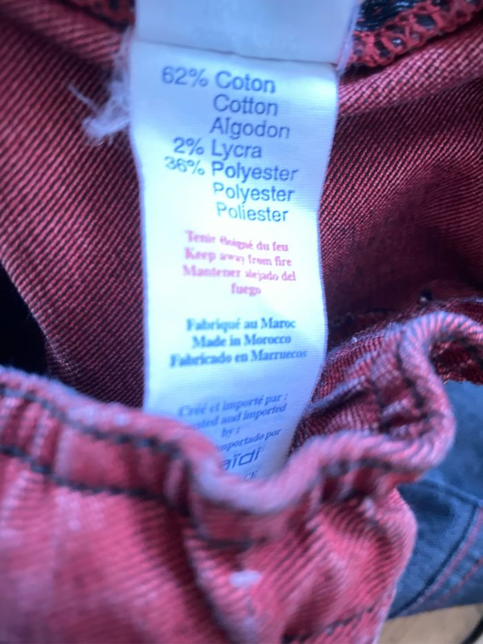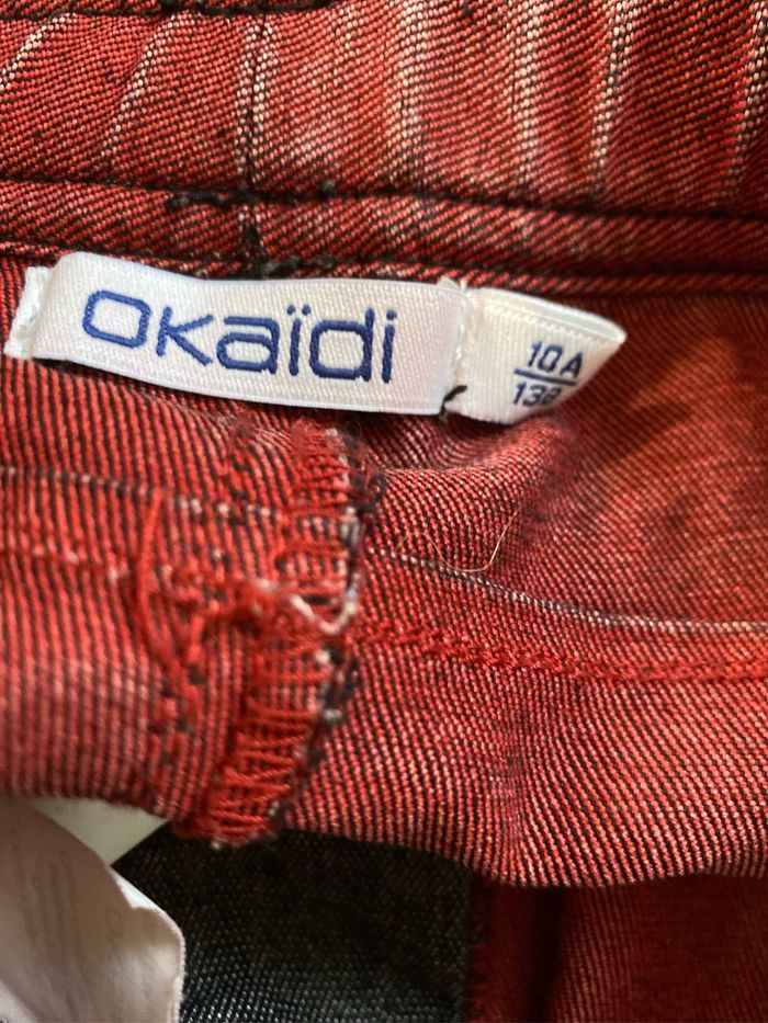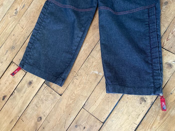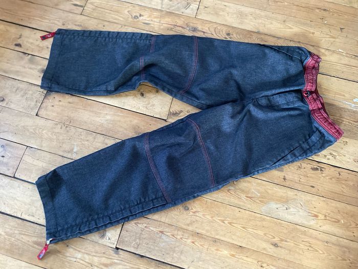 Pantalon jeans large Grande fermeture en bas des jambes Cordon à la taille Jeans noir intérieur et ceinture rouge 62% coton 2% elasthane 36% polyester Taille 10 ans 138 cm Okaidi