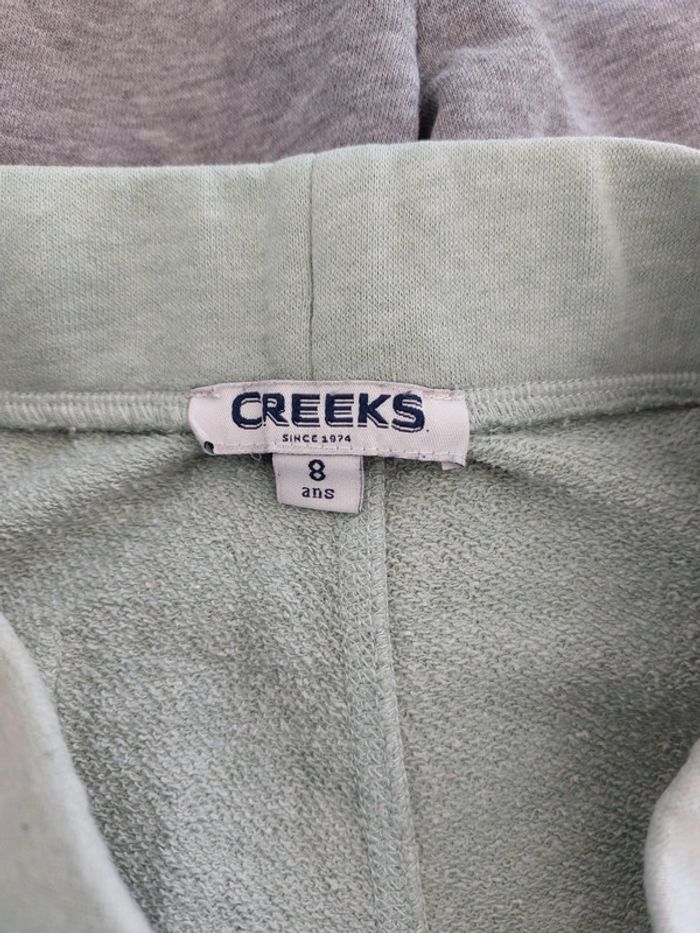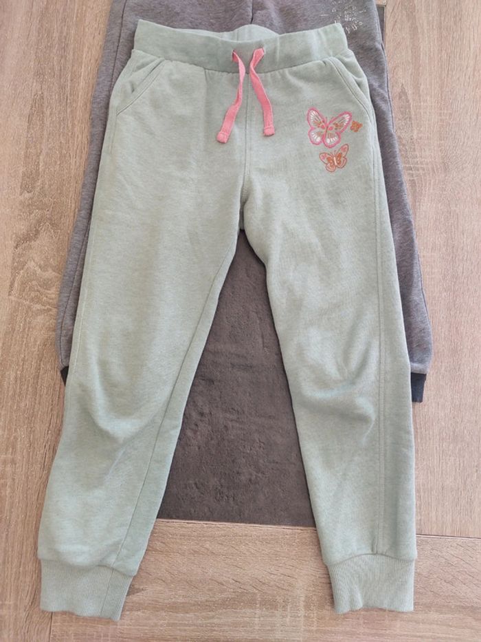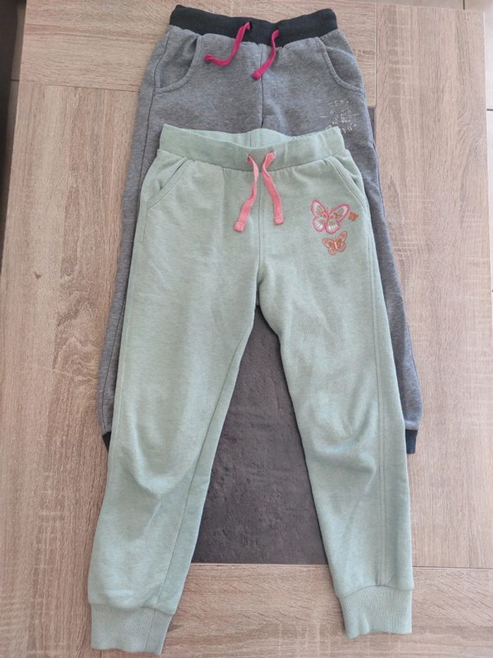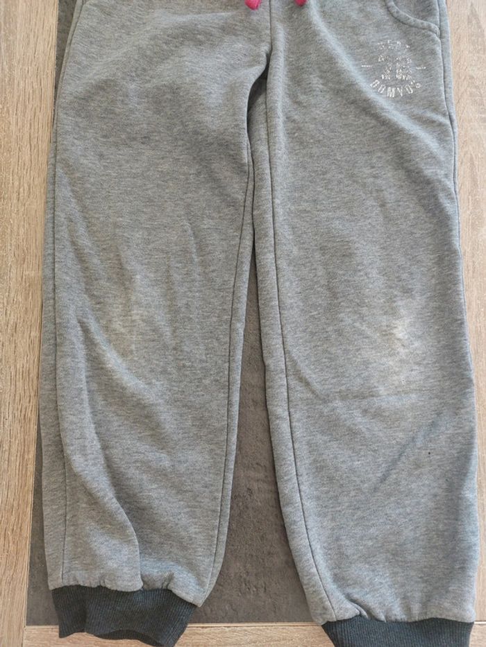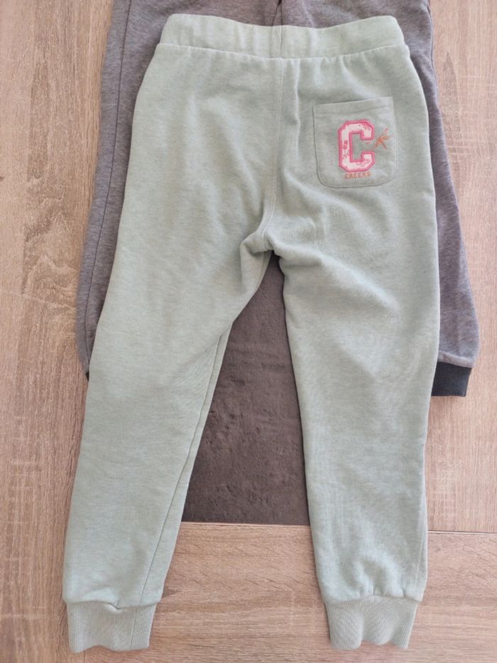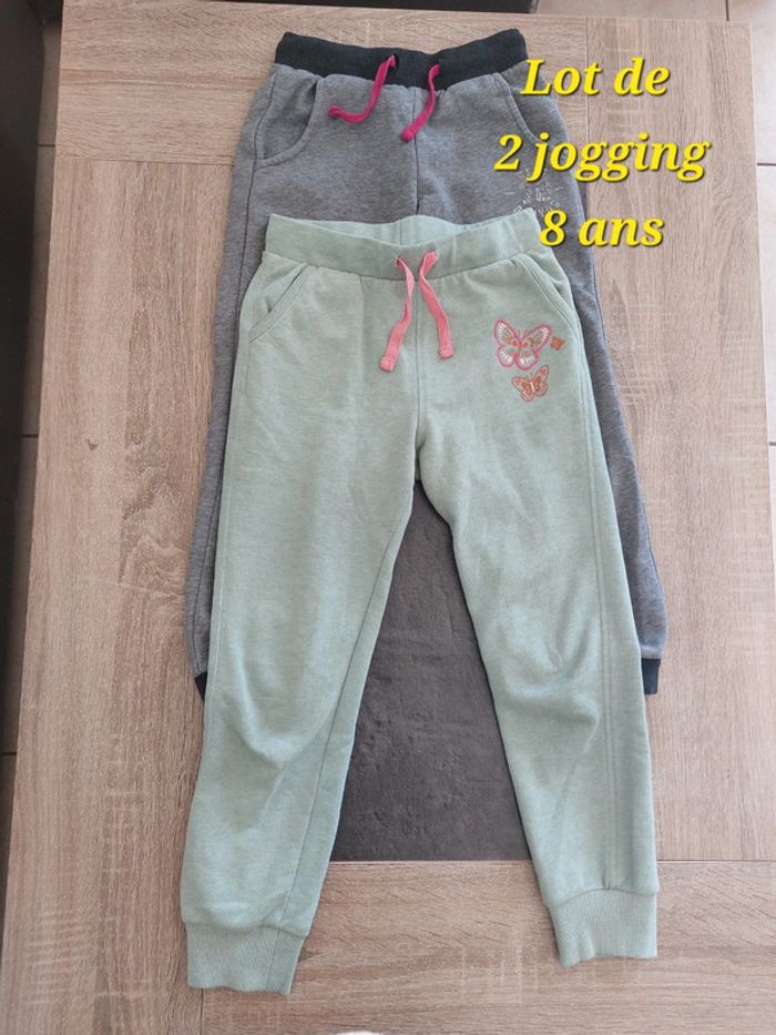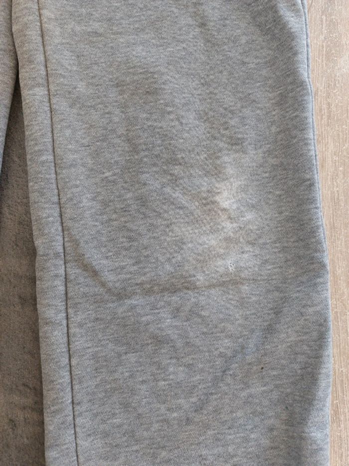 Il y a des traces d'usures sur le jogging gris au niveau des genoux et un trou ( voir dernières photos ) et le jogging vert à petit trou au niveau de la jambe ( voir dernières photos ). Idéal pour jouer dans le jardin 🤣