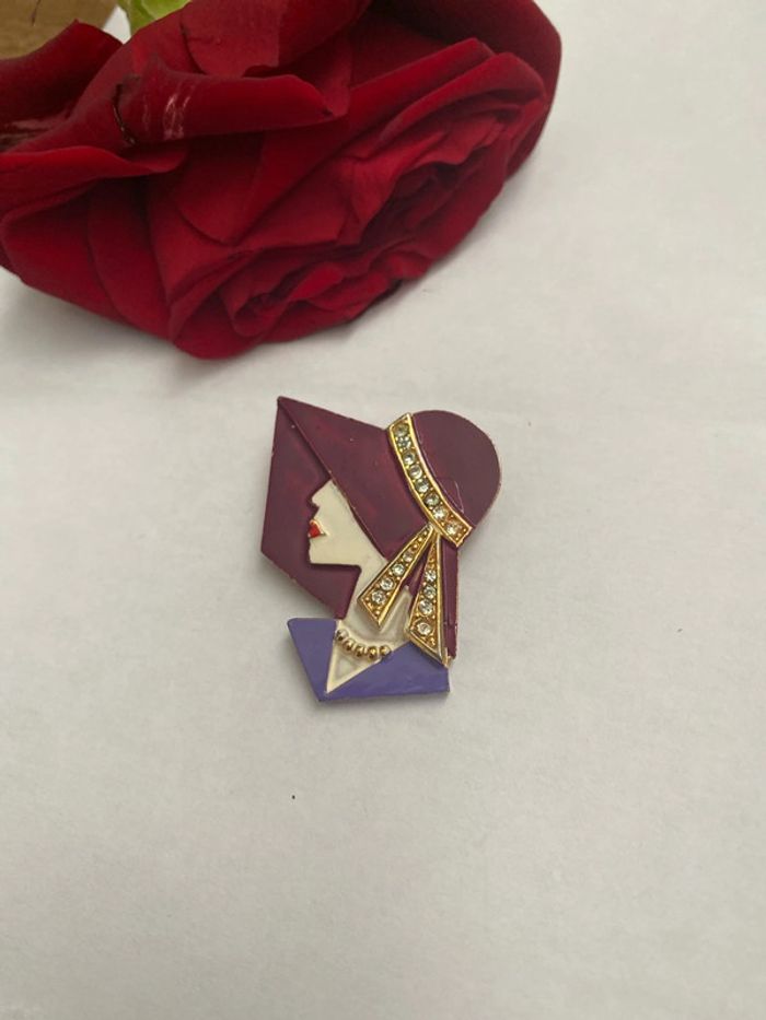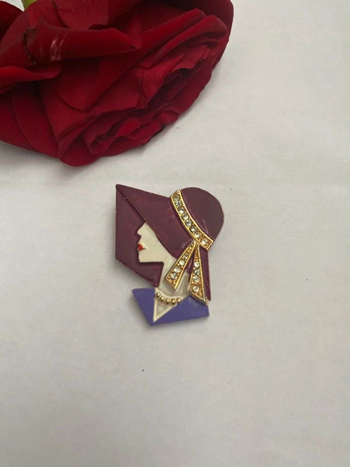 Broche profil femme avec chapeau 👒