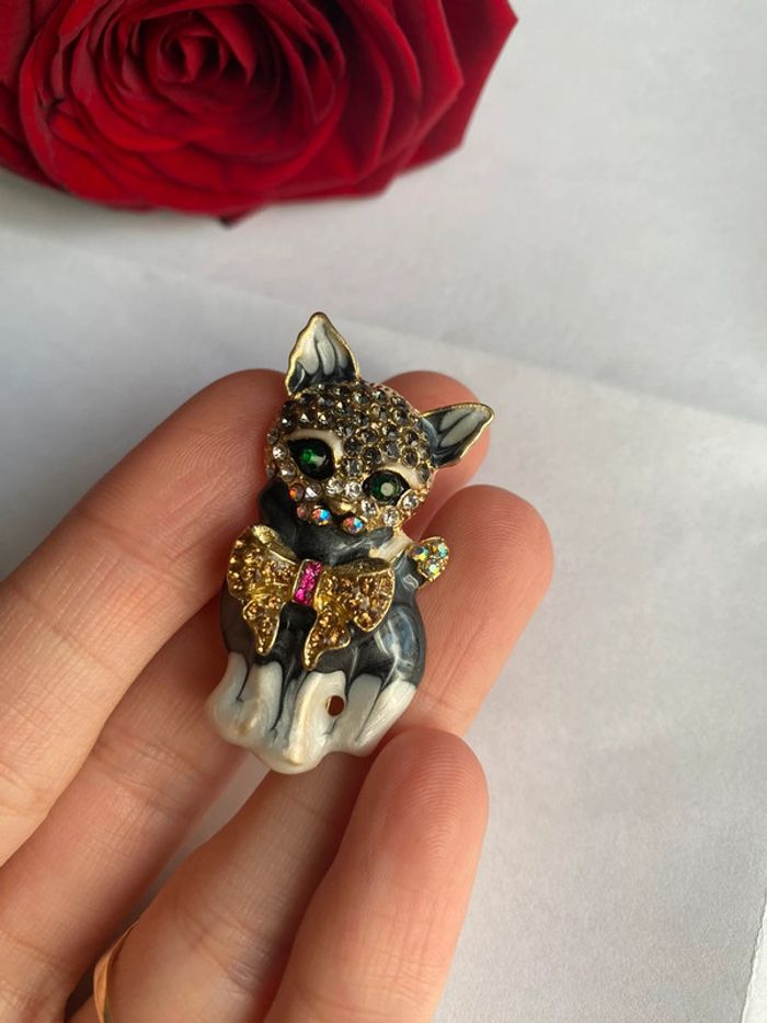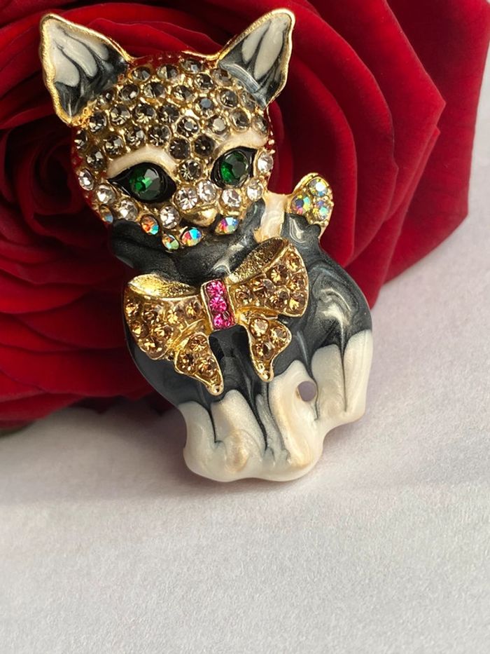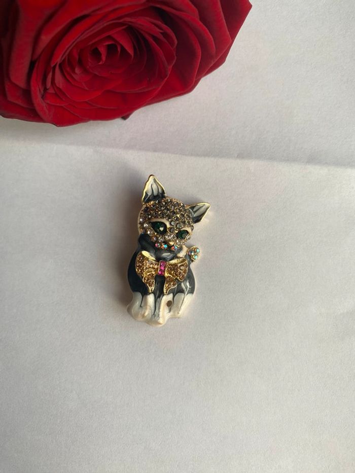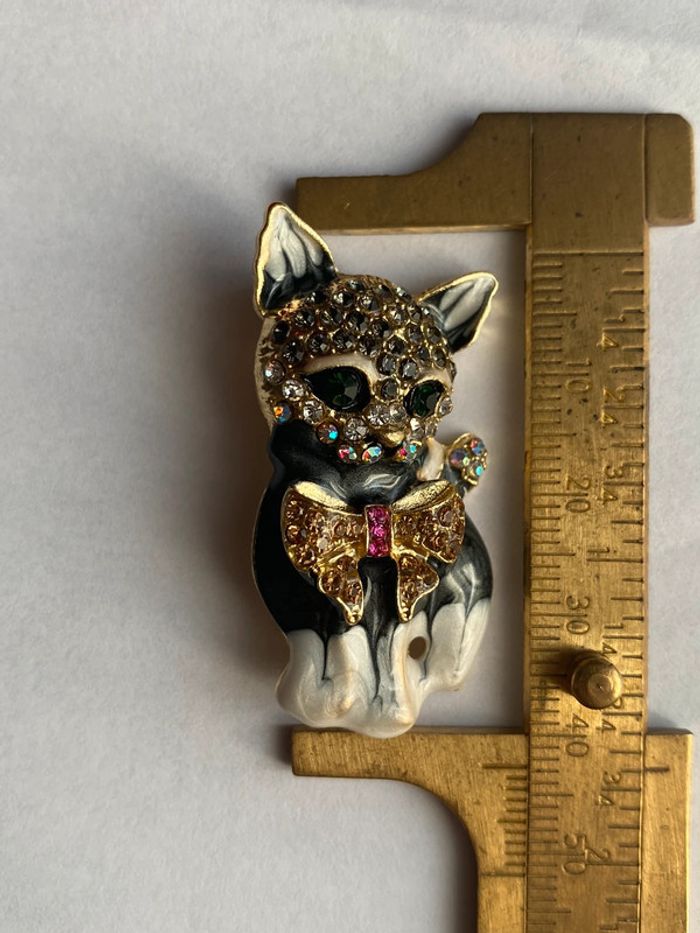 Broche en métal émaillé représentant 1 chaton avec un nœud papillon Dimensions : environ 4,2 x 2,2 cm Fermeture par épingle
