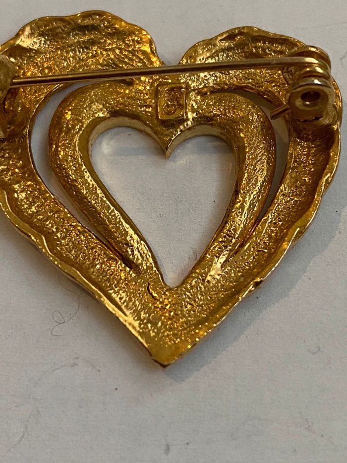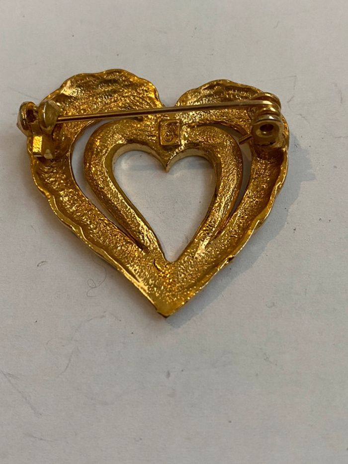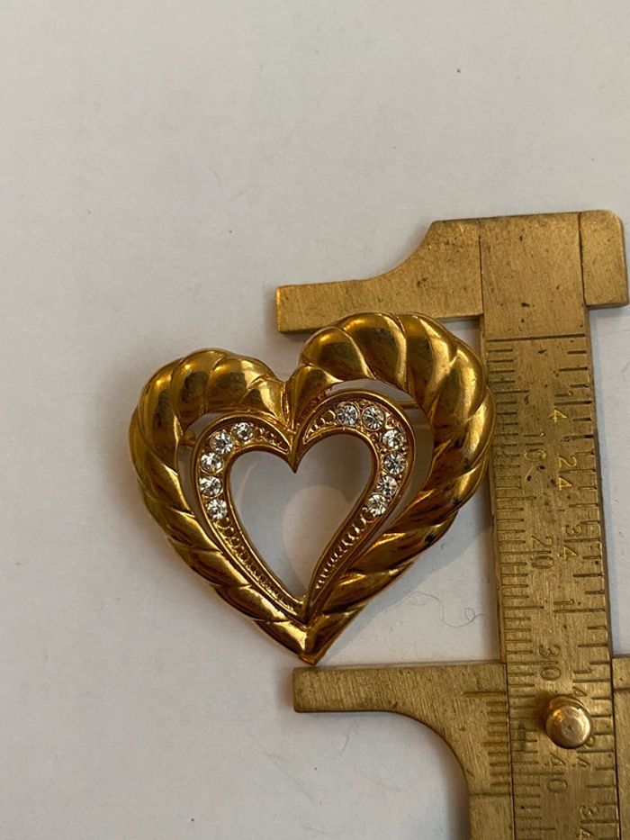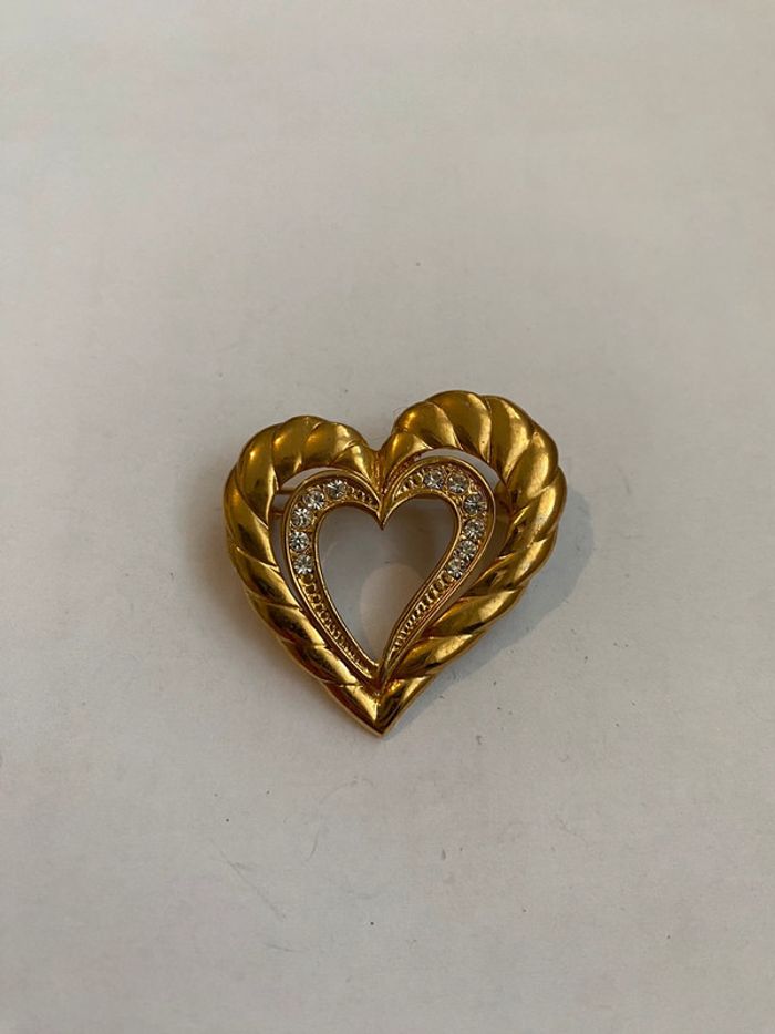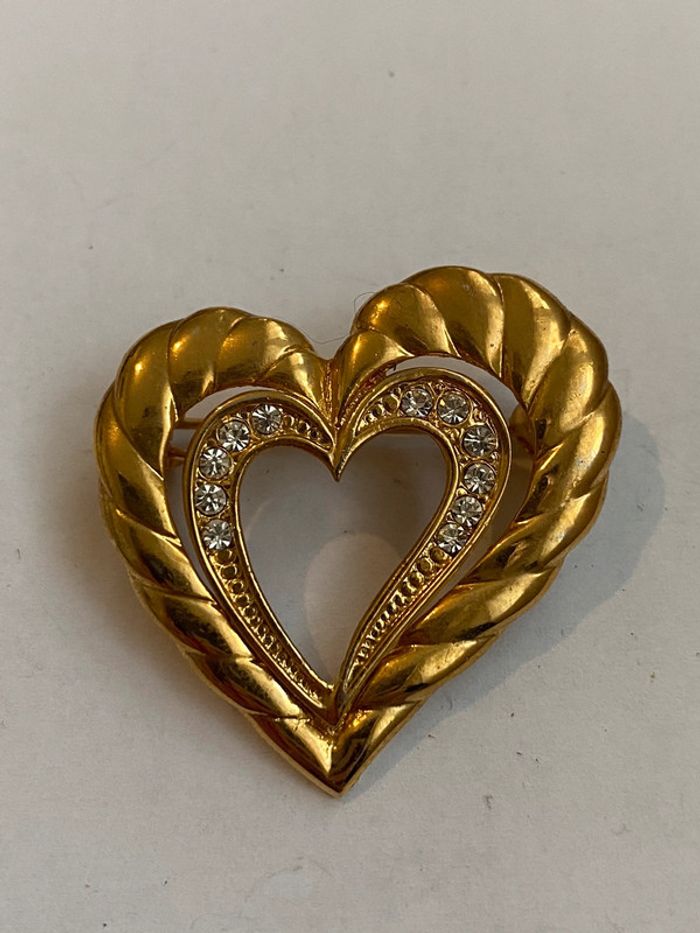 Broche vintage forme coeur Broche métal doré et strass largeur 3.2 cm hauteur 3.2 cm