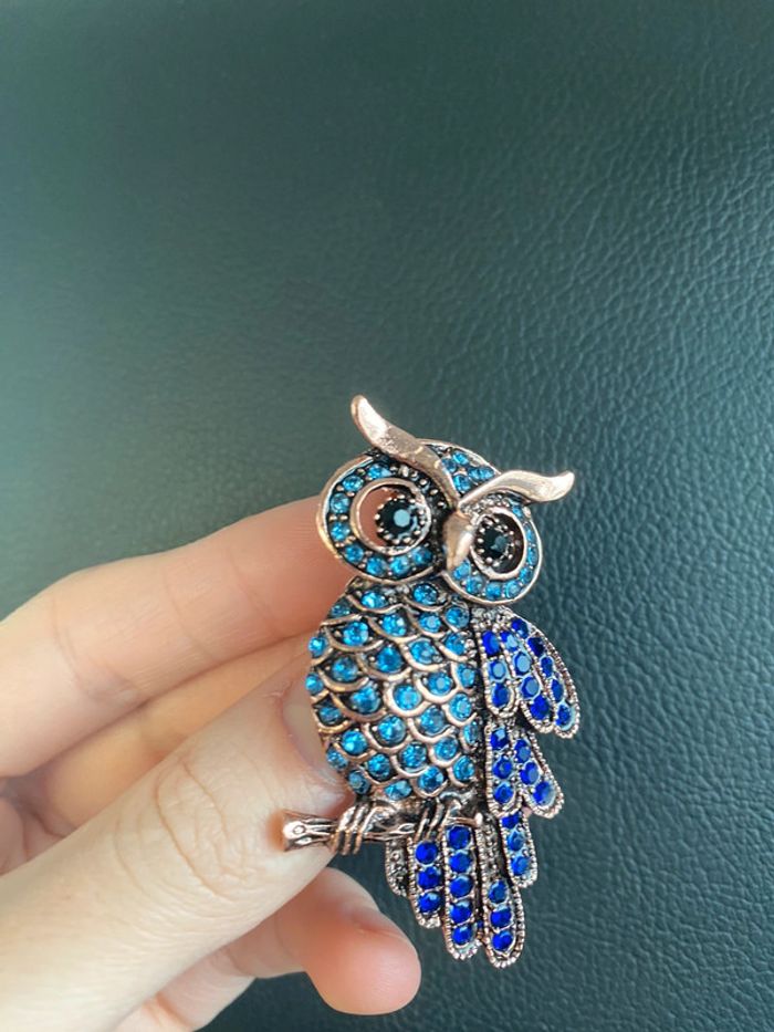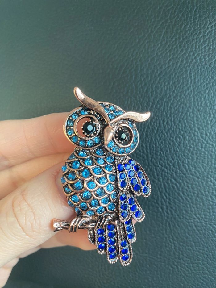 Magnifique grande Broche hibou en strass cristal