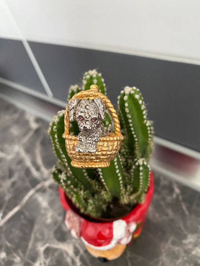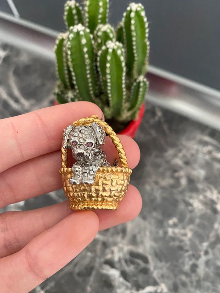 Broche vintage chien dans un panier