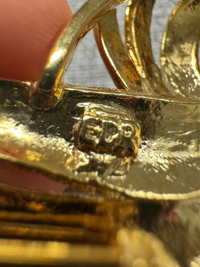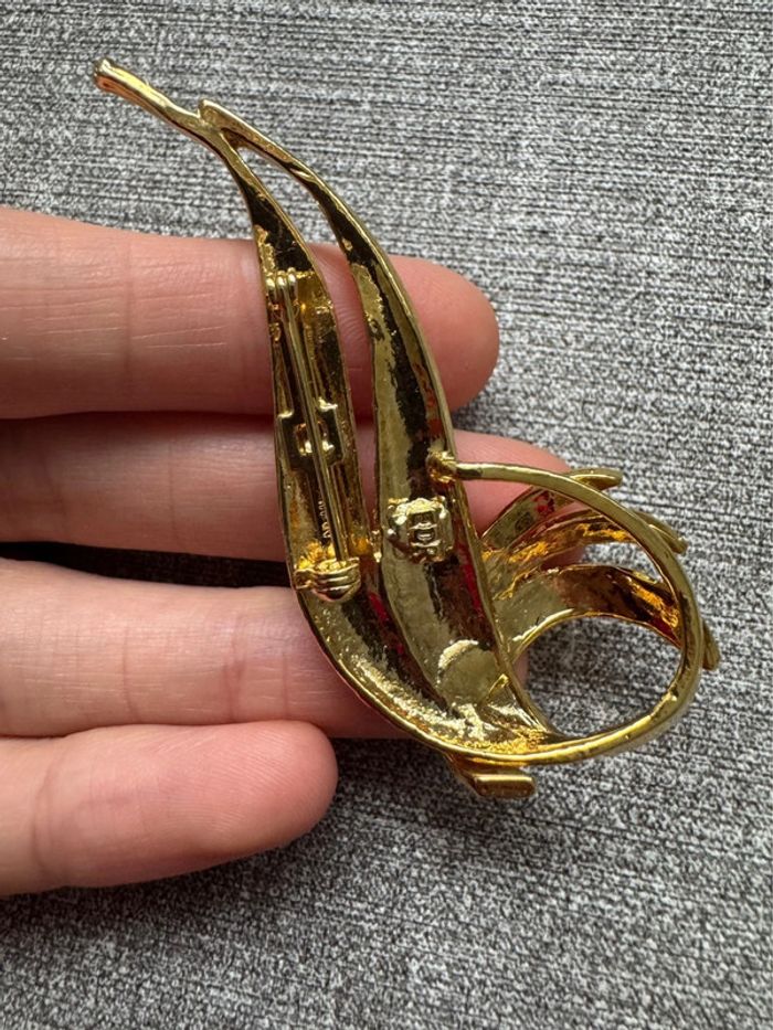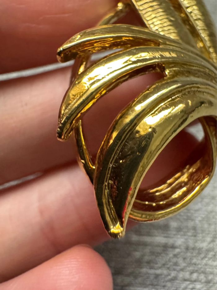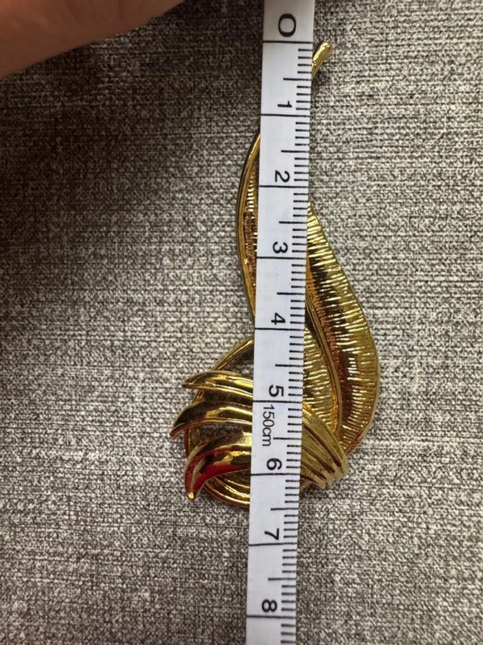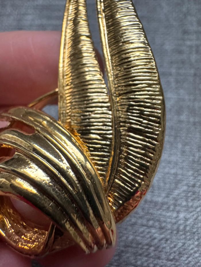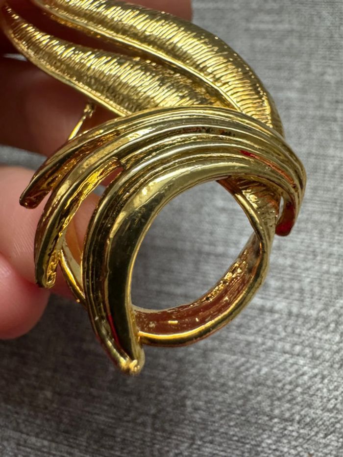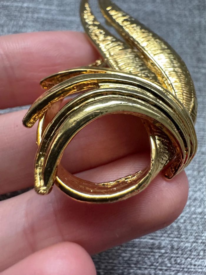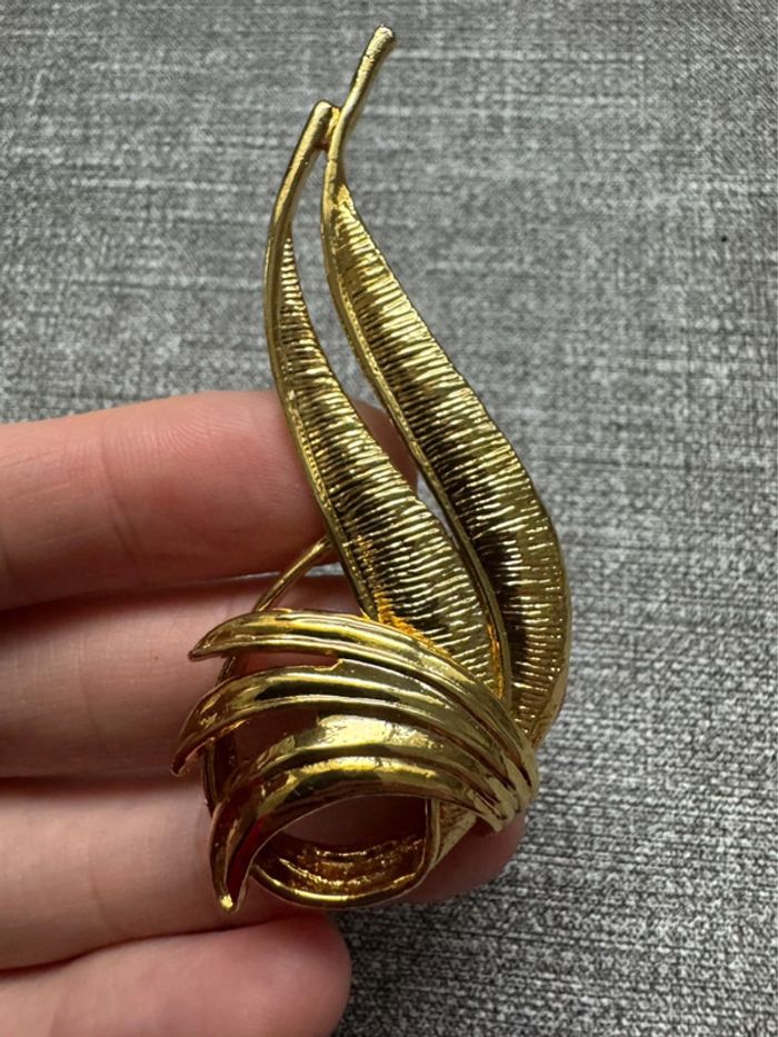 Broche dorée plumes signé EDR et Taiwan au dos Fabriqué à partir de métal doré dans un motif de feuille de style moderniste abstrait. Vers les années 80 La taille de la broche est d'environ 7,2 cm sur 3,1 cm au point le plus large. Fermoir de sécurité sécurisé