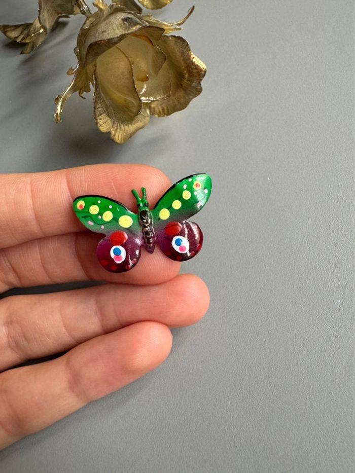 Petite broche papillon 🦋 émaillée sur cuivre Vintage année 60-70 Taille 3,2cmx2cm