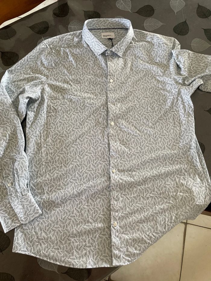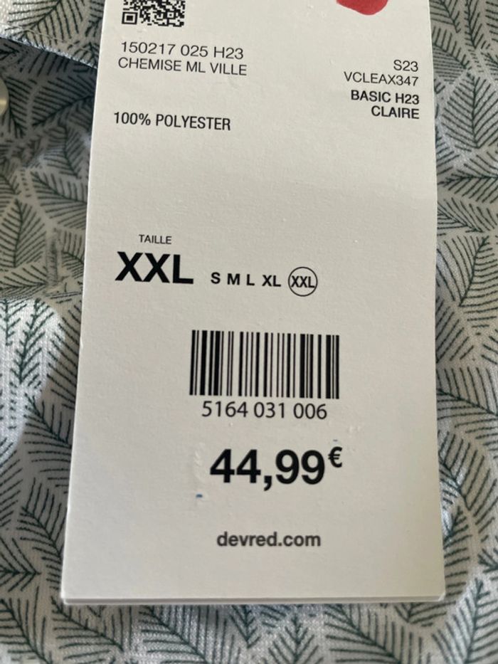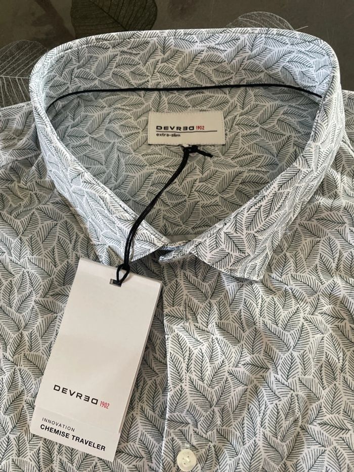 Chemise à motifs feuilles vertes à manches longues, neuve avec étiquette Marque Devred Taille extra slim XXL Largeur aisselles à aisselles 60cm