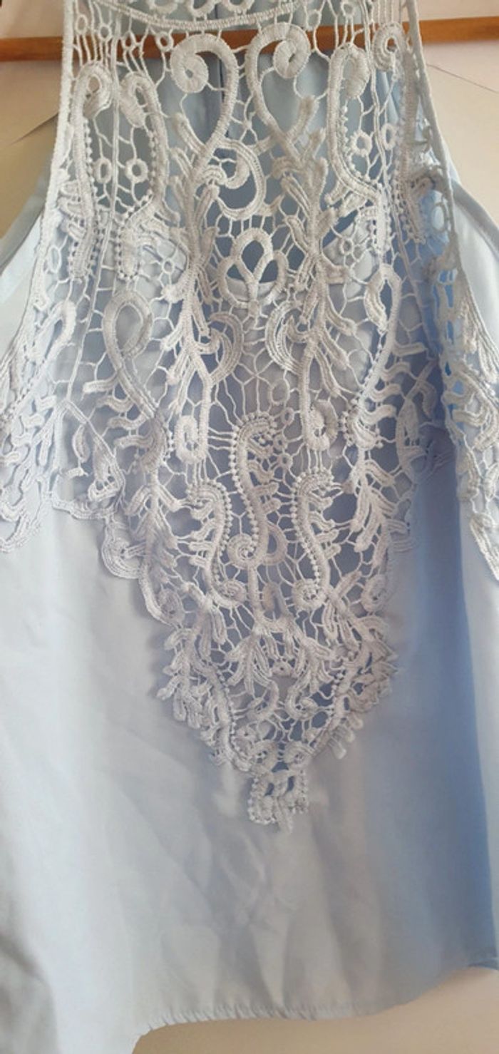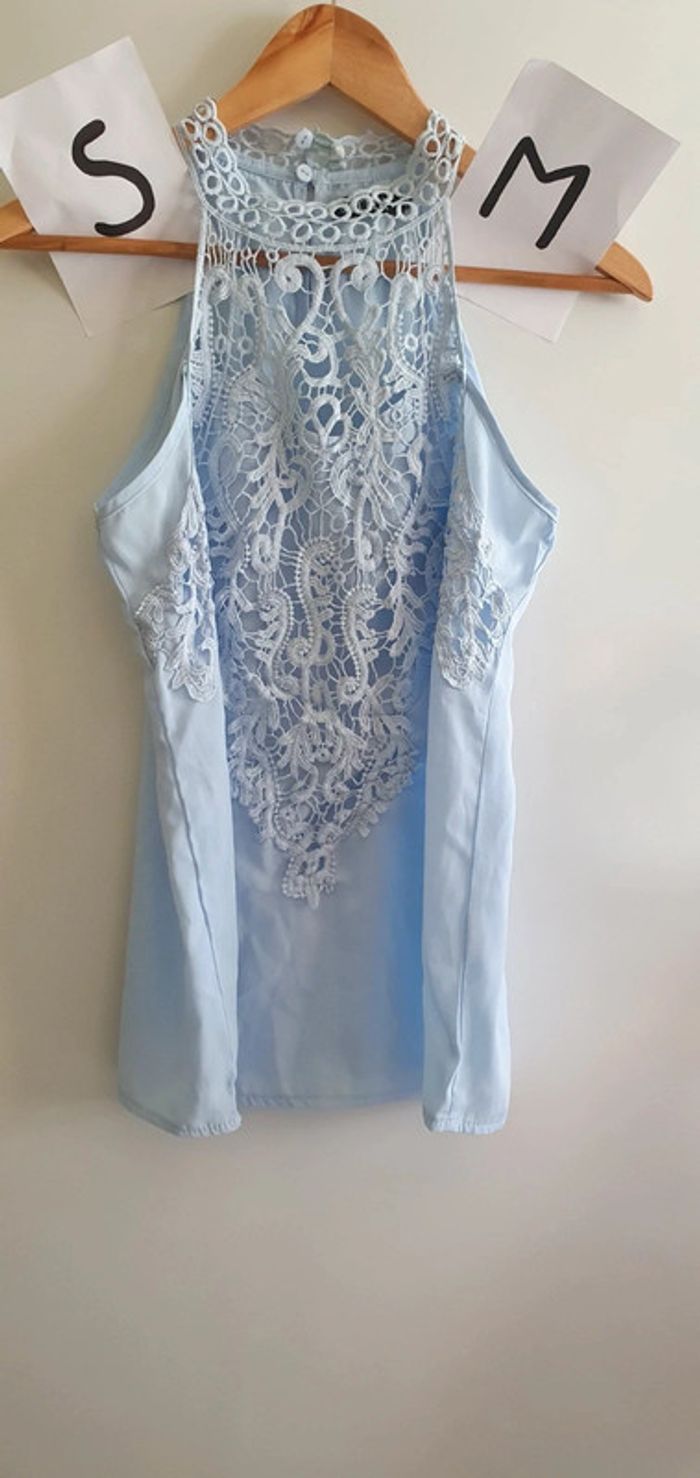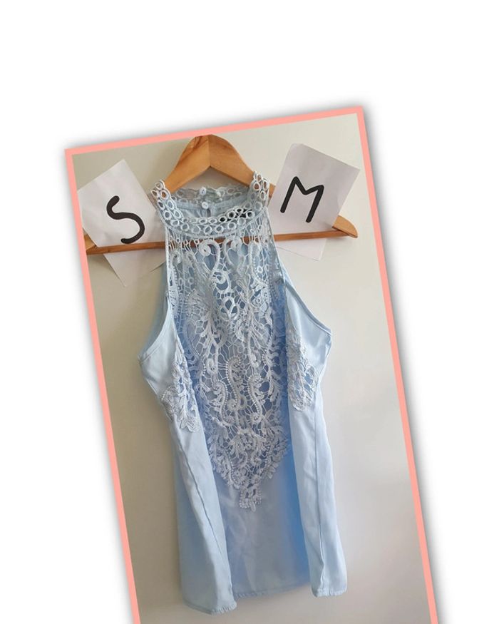 Top léger femme maillot t-shirt débardeur taille s/m Bleu clair avec dentelle #ann010203_femme_tailleS_36 #ann010203_femme_tailleM_38