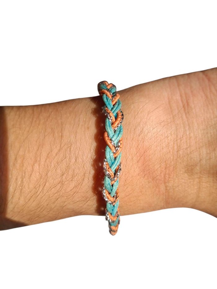 Bracelet tresses dorée vert bleu vintage - photo numéro 4
