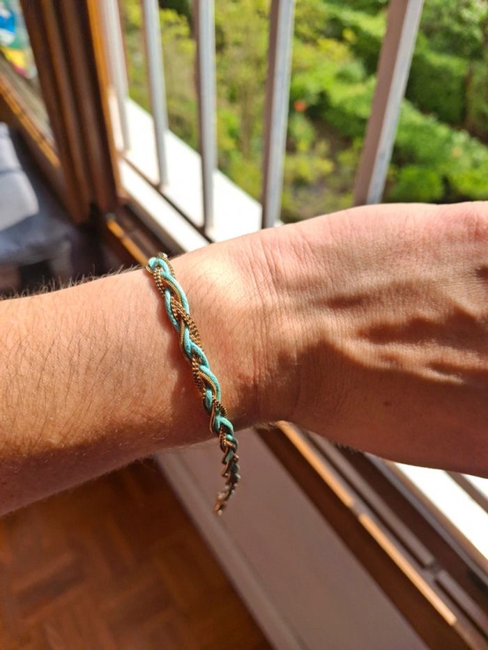Bracelet tresses dorée vert bleu vintage - photo numéro 2