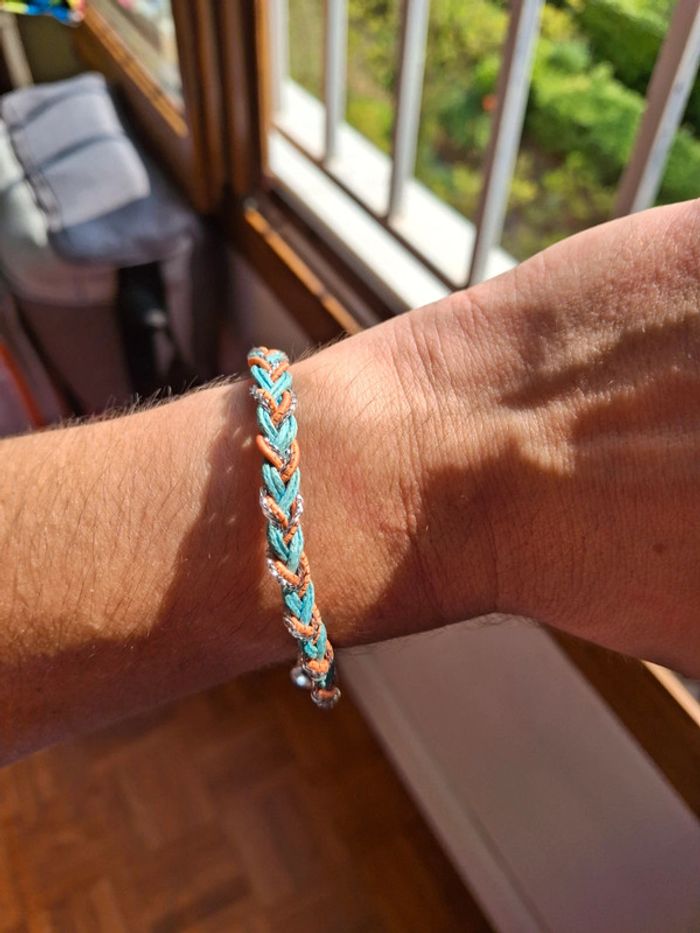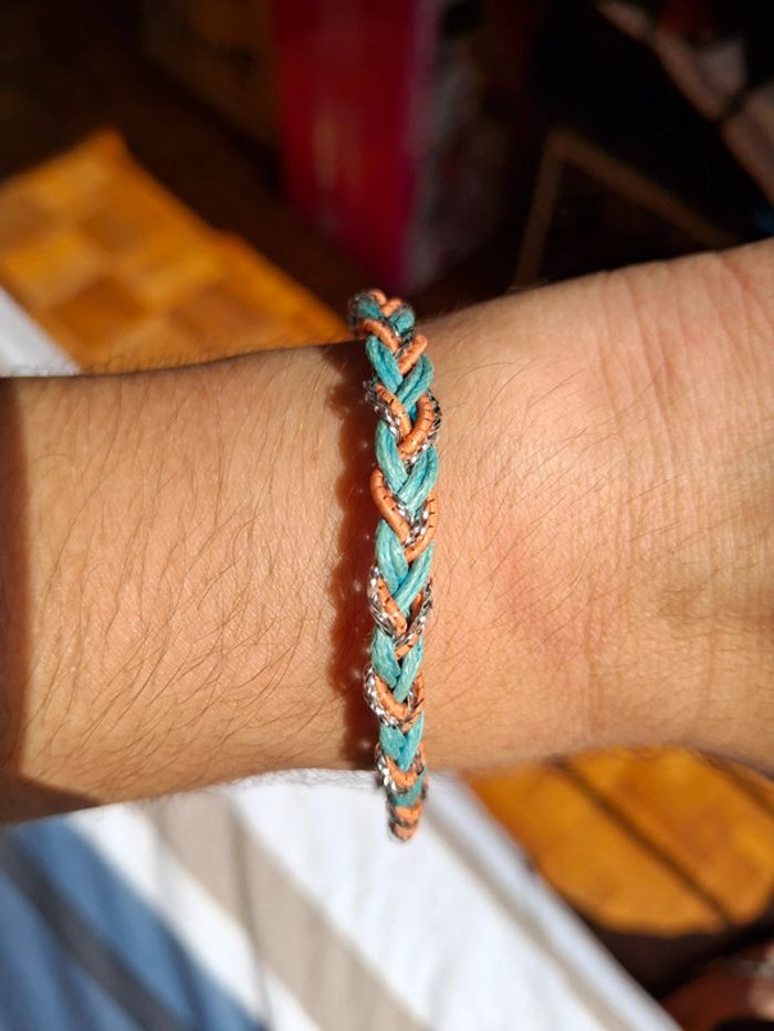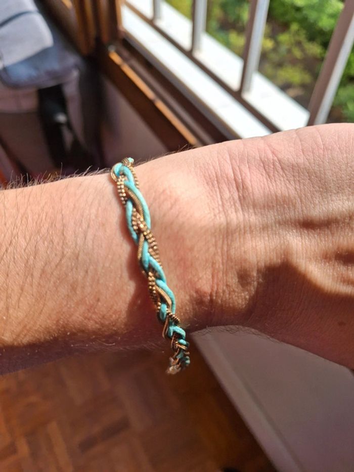 Bracelet tresses dorée vert bleu vintage - photo numéro 6